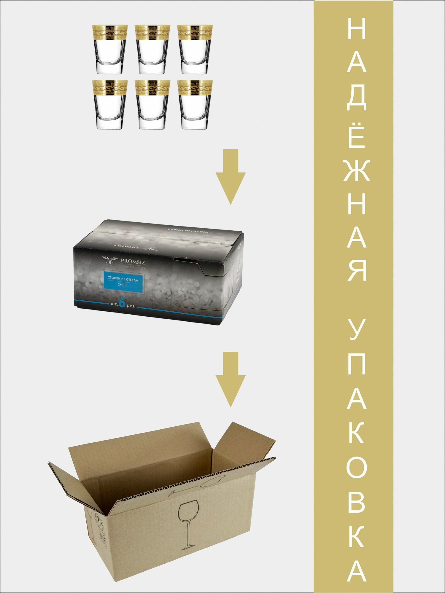 Подарочный набор стопок с алмазной гравировкой PROMSIZ "ЯНТАРЬ СИМПЛ" / 60 мл, 6 шт.