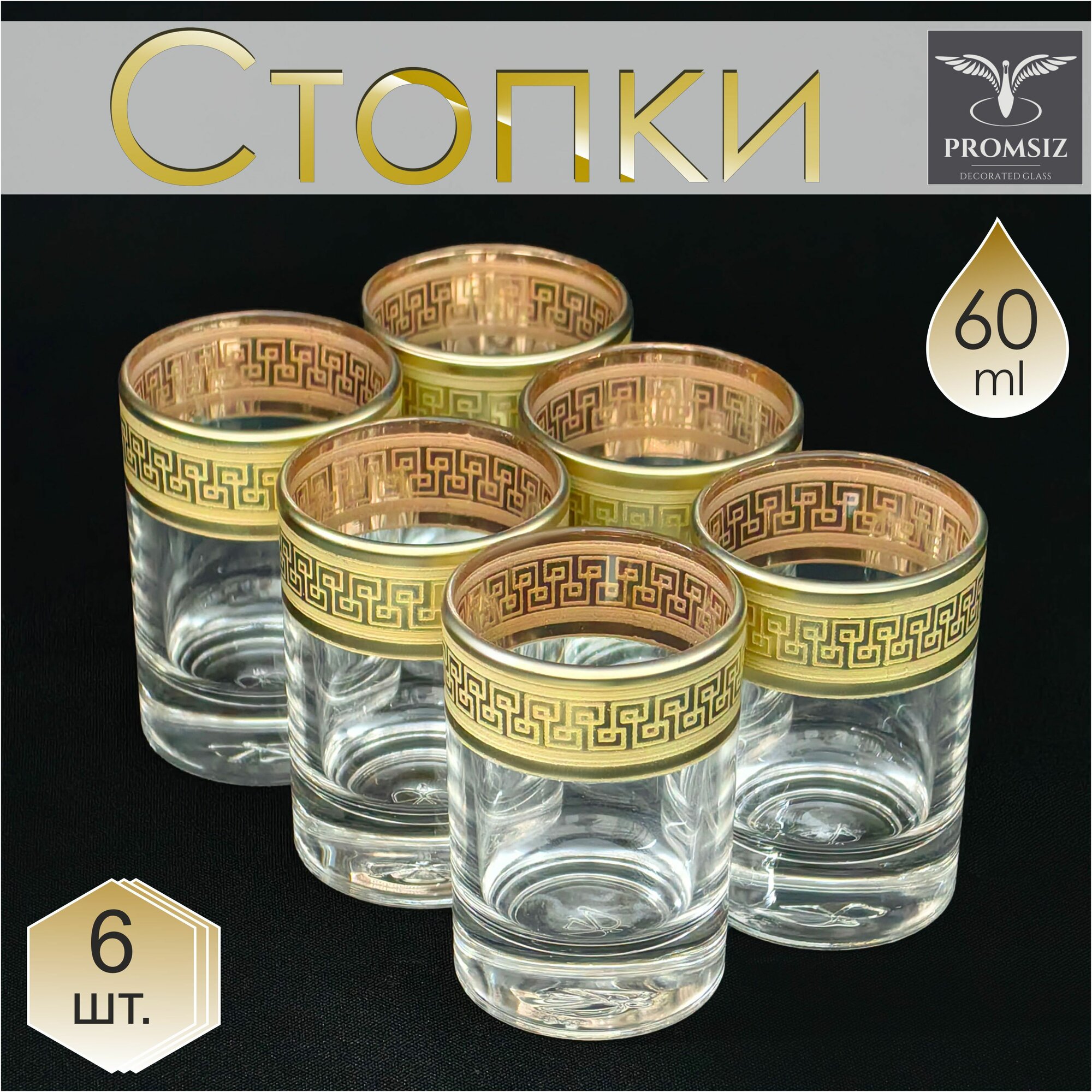 Подарочный набор стопок с алмазной гравировкой PROMSIZ "ЯНТАРЬ СИМПЛ" / 60 мл, 6 шт.