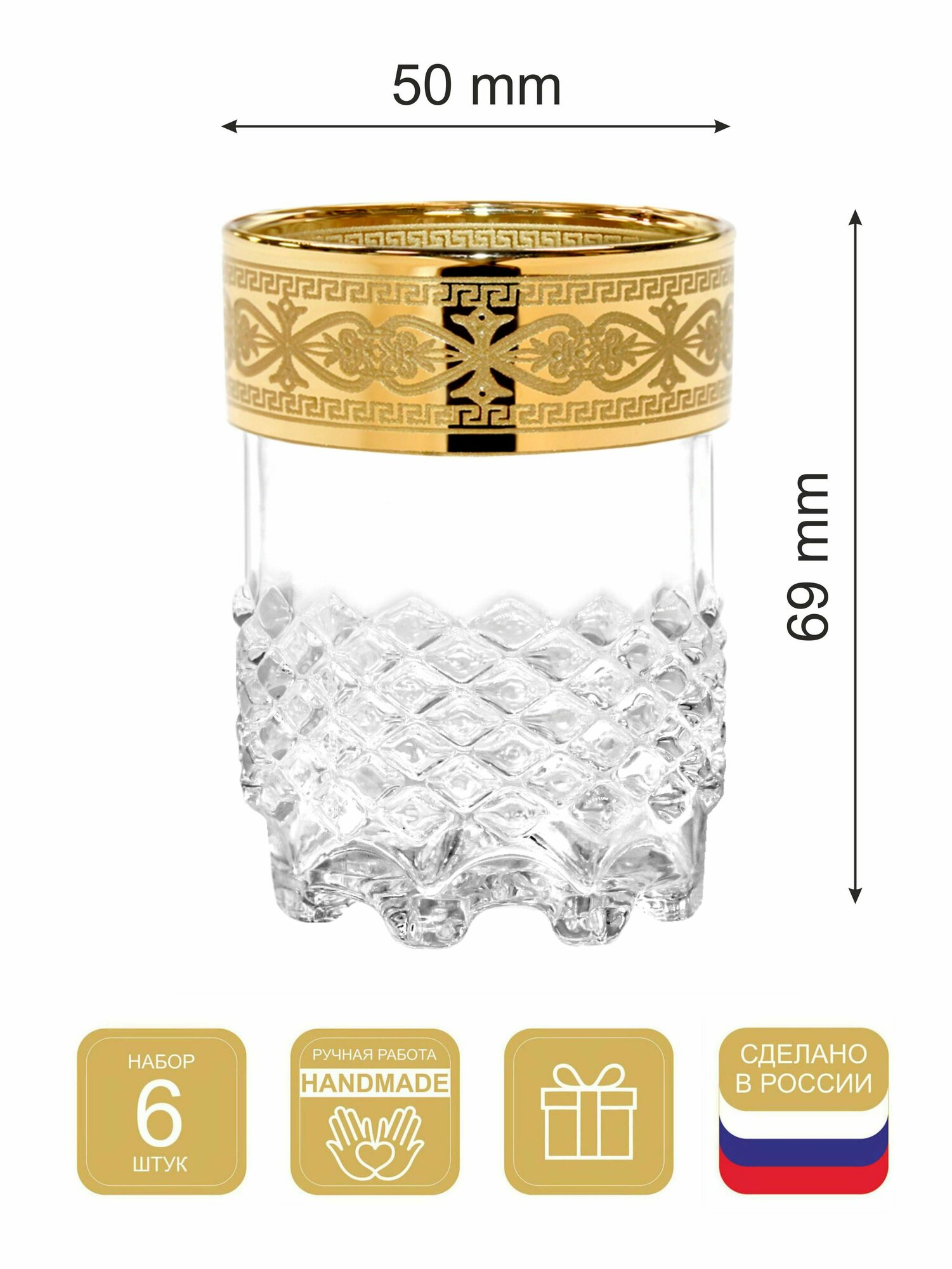 Подарочный набор стопок с алмазной гравировкой PROMSIZ "ЯНТАРЬ СИМПЛ" / 60 мл, 6 шт.