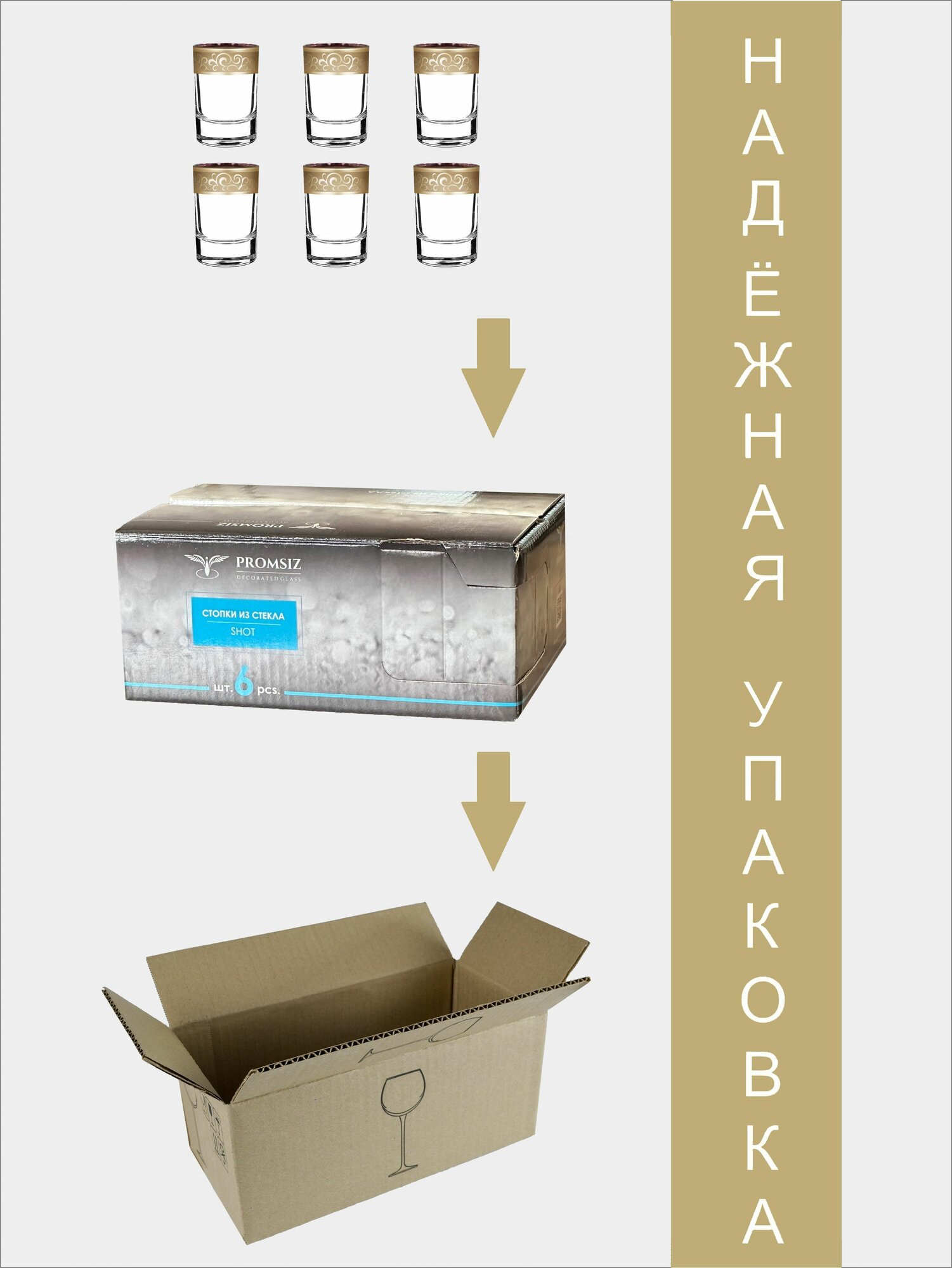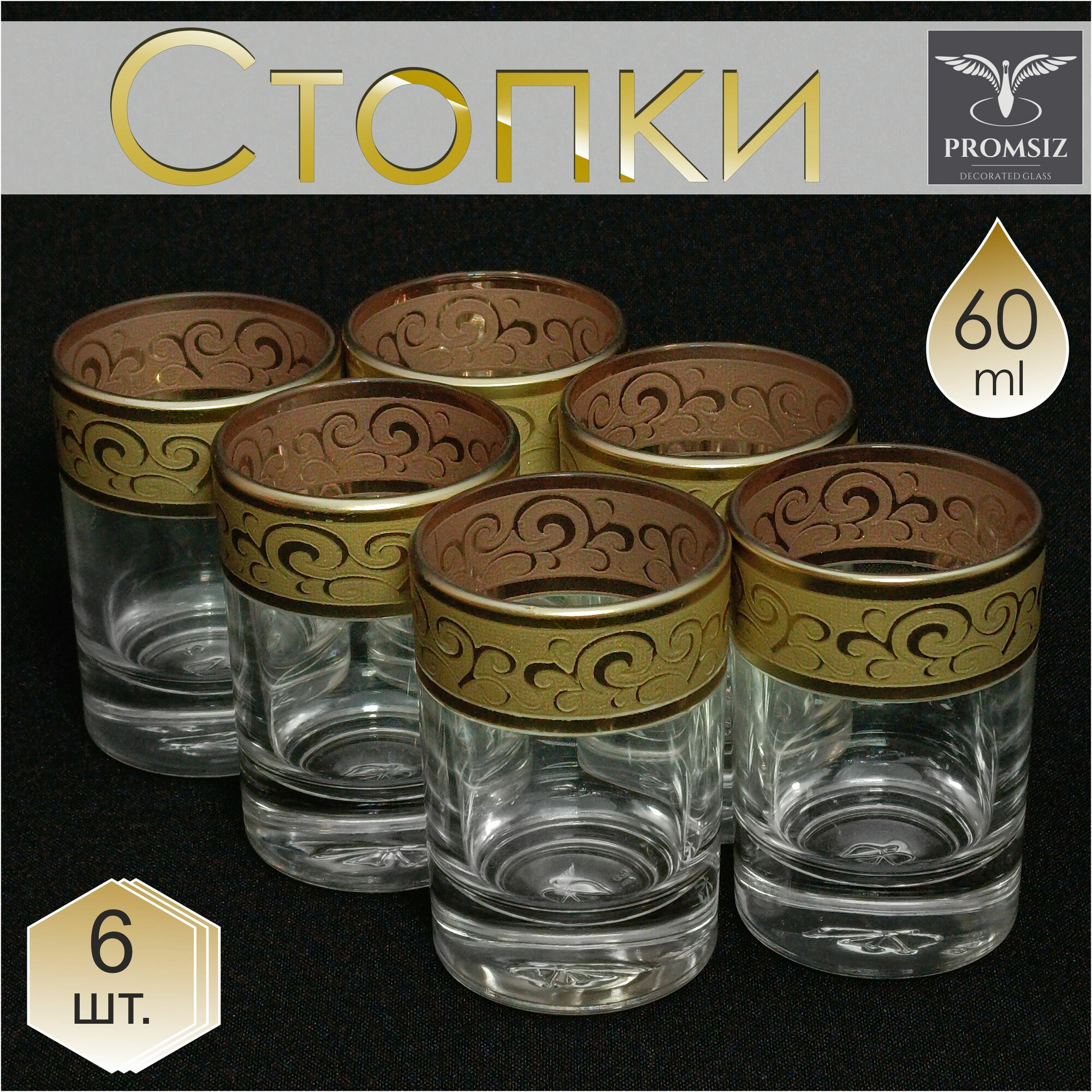 Подарочный набор стопок с алмазной гравировкой PROMSIZ "ЯНТАРЬ СИМПЛ" / 60 мл, 6 шт.