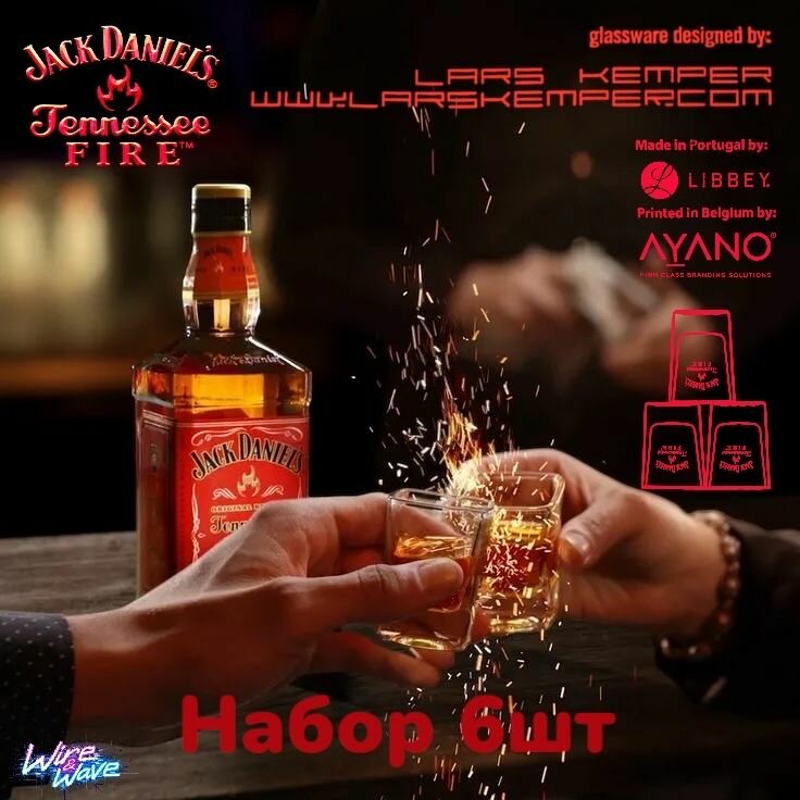 Брендированные рюмки (шоты) Jack Daniel s Tennessee Fire JF150 designed by: Lars Kemper, из каленого стекла, набор 6шт, 52мл. интересное: