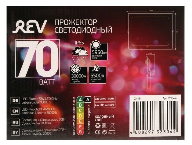 Ниже Вы можете прочитать отзывы на Прожектор светодиодный REV (32304 4) ULTRA SLIM 70W 6500К, ознакомится с подробными характеристиками, посмотреть интересные обзоры и фотографии на Прожектор светодиодный REV (32304 4) ULTRA SLIM 70W 6500К.