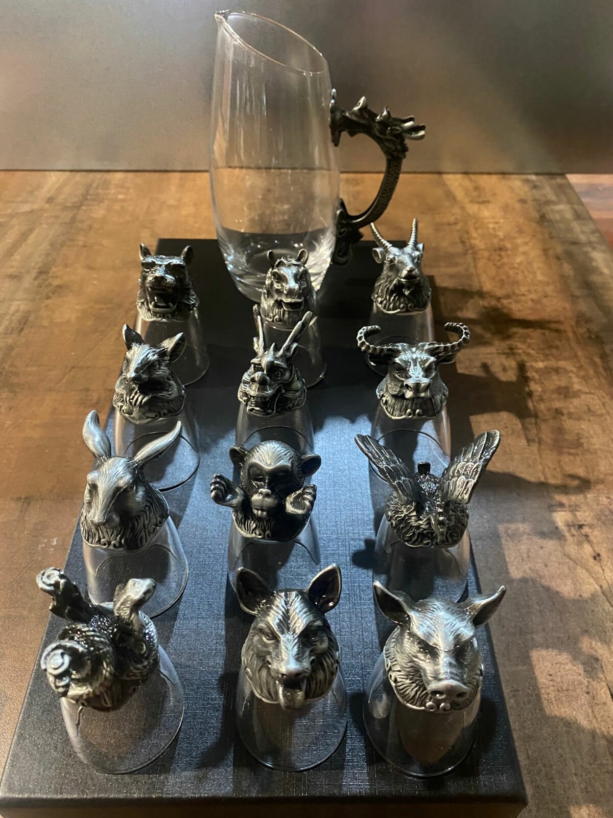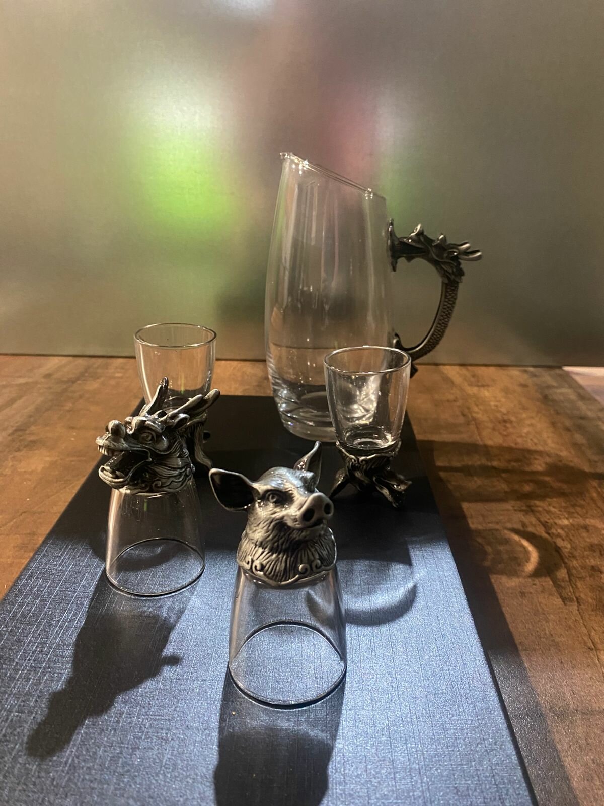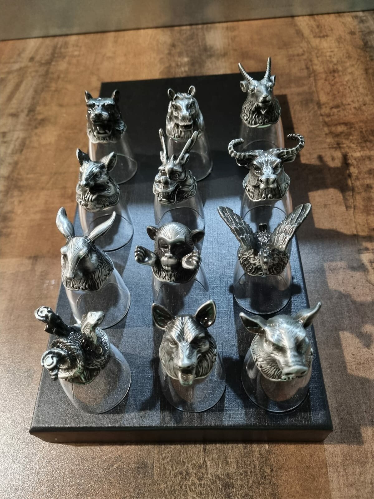 Подарочный набор, рюмки перевертыши для водки, коньяка (состаренное серебро)