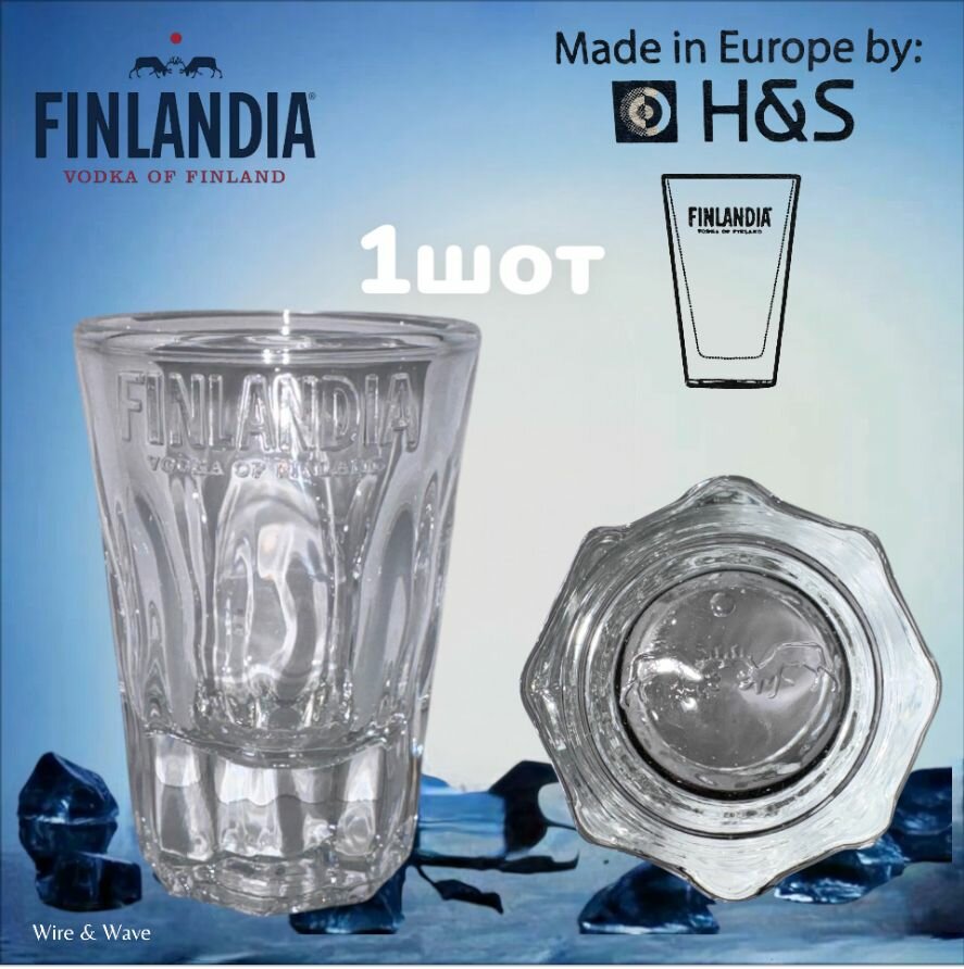Шот с гравировкой логотипа FINLANDIA vodka of Finland , закаленое стекло, 50мл интересное:
