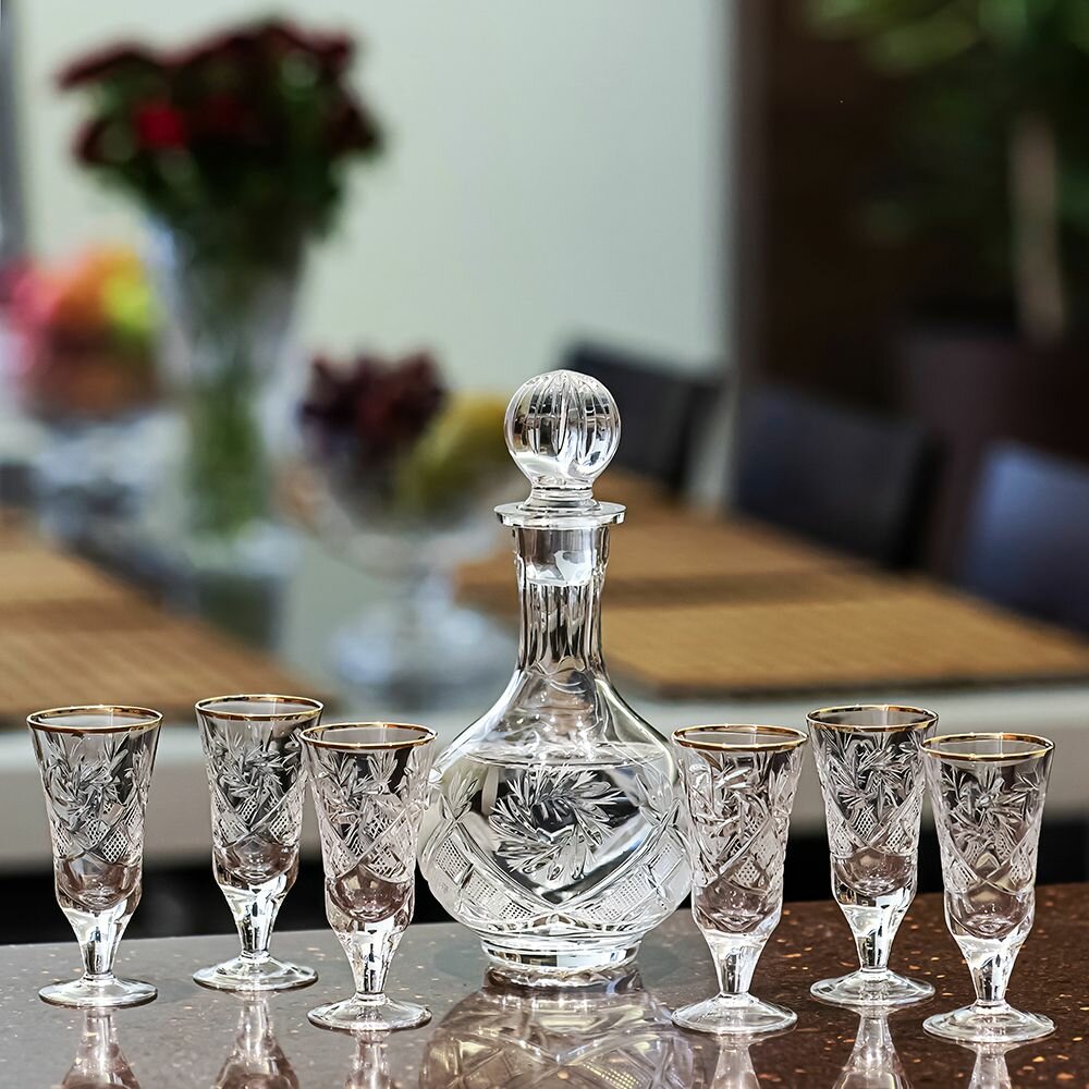 Хрустальные рюмки на ножке для водки, ликера, коньяка 25 мл. набор 6 шт. Неман 1000/1, 2879/25гр отводка золотом интересное: