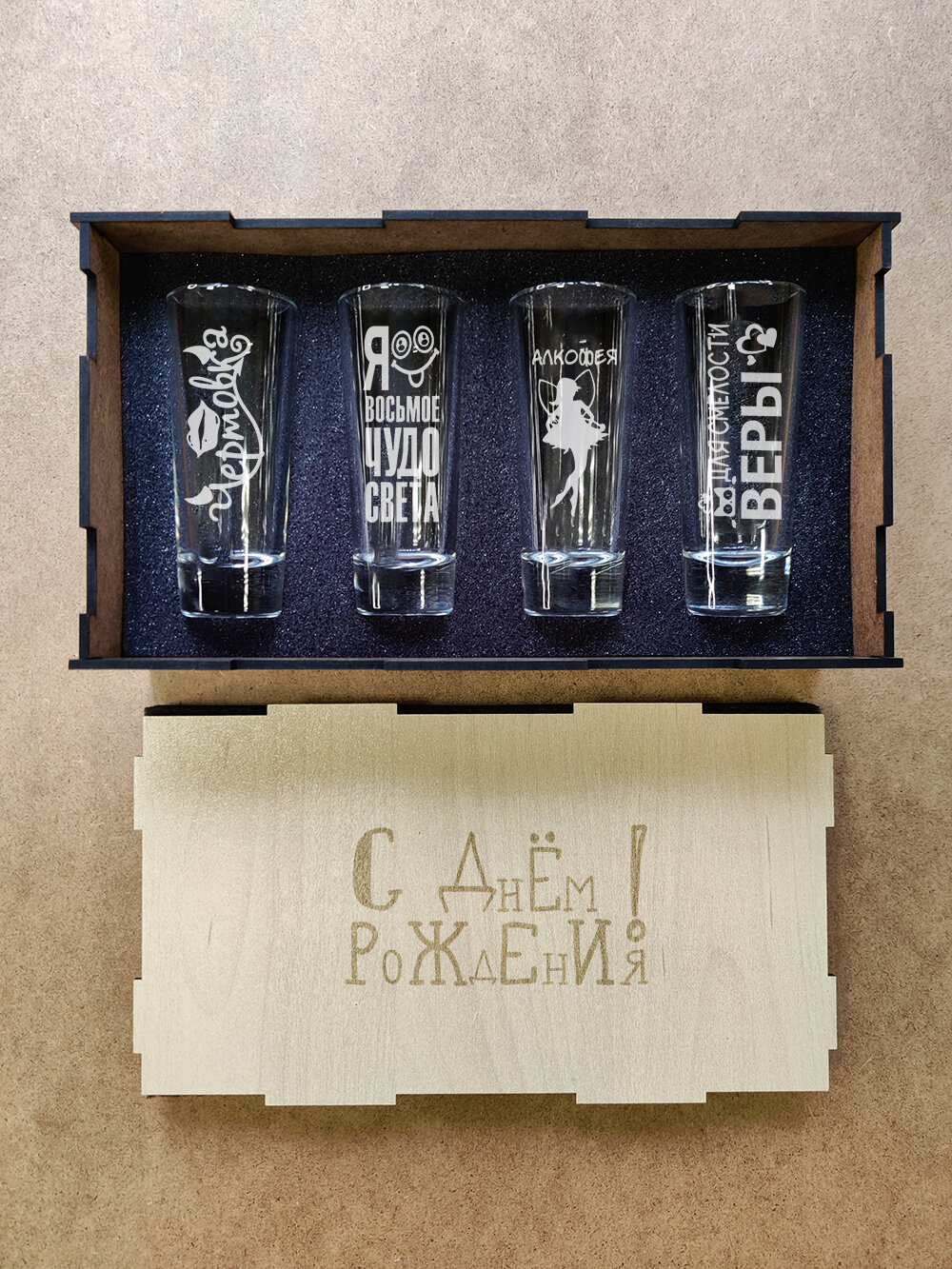 СохранитьПодарочный набор стопок в коробке с гравировкой - ДР Вера интересное:
