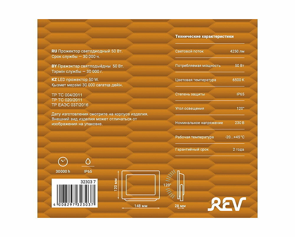Прожектор REV 32303 7 AC 85-265V, 50HZ, 50W