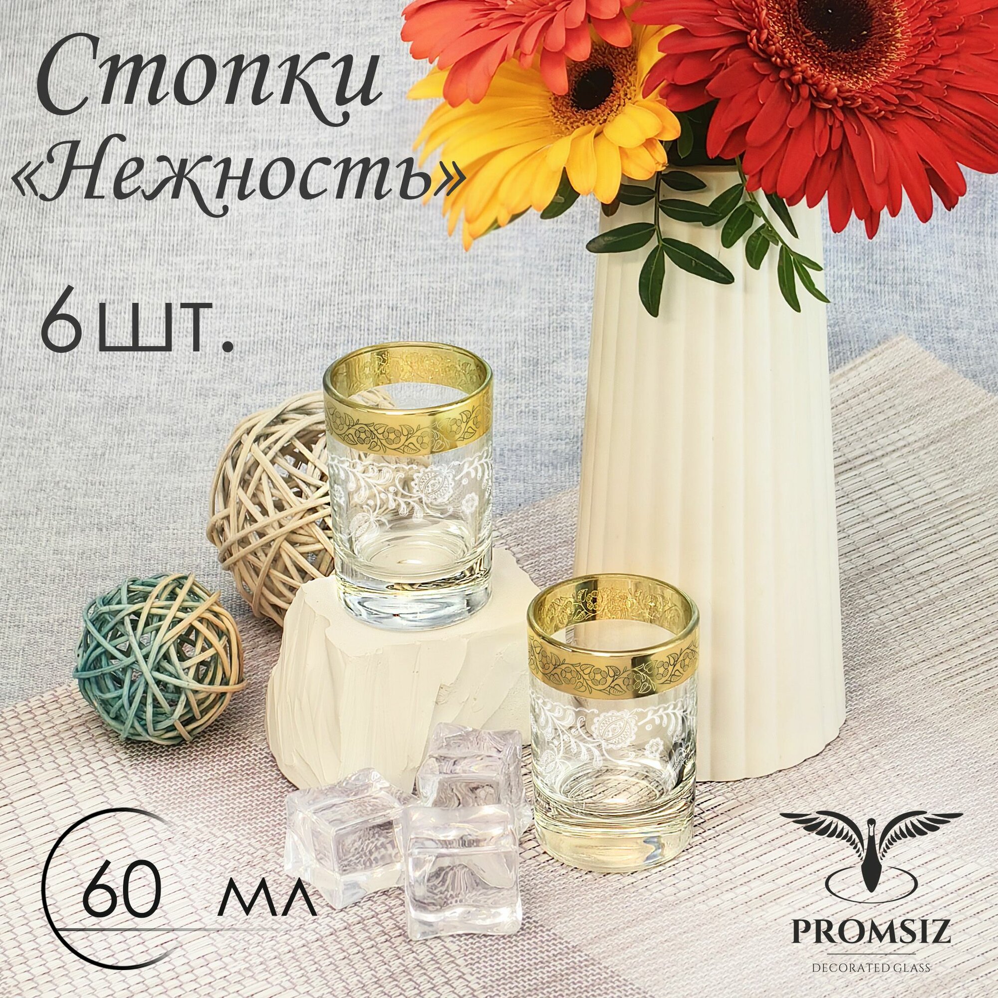 Подарочный набор стеклянных стопок с алмазной гравировкой PROMSIZ "НЕЖНОСТЬ" / 60 мл, 6 шт. интересное:
