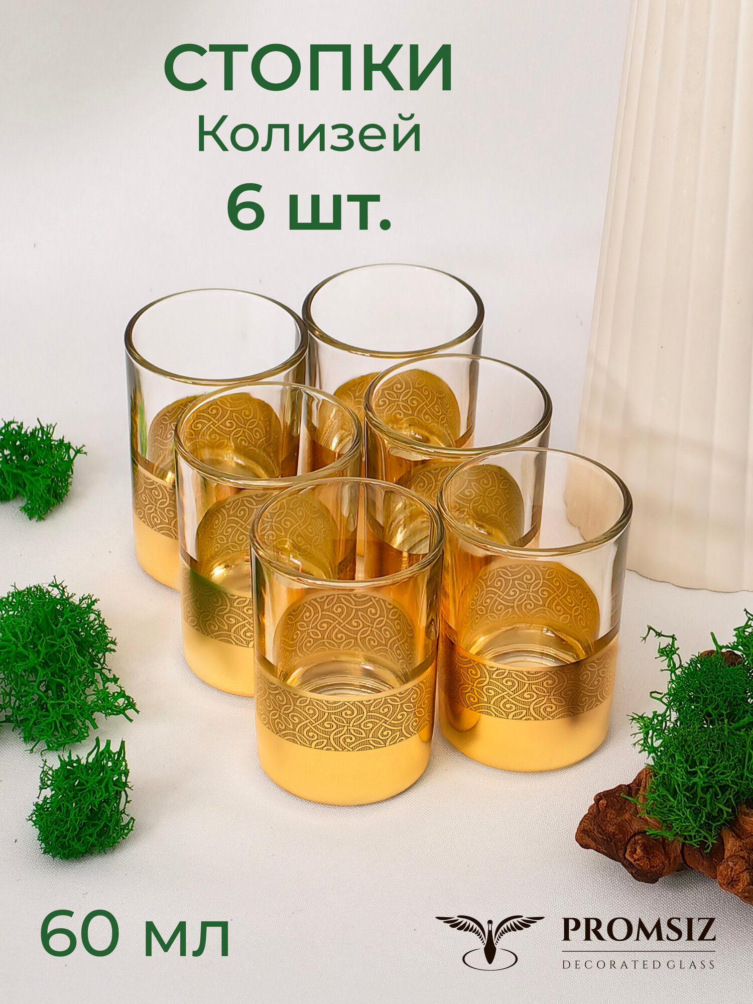 Купить Подарочный набор стеклянных стопок с алмазной гравировкой PROMSIZ колизей, 60 мл, 6 шт.