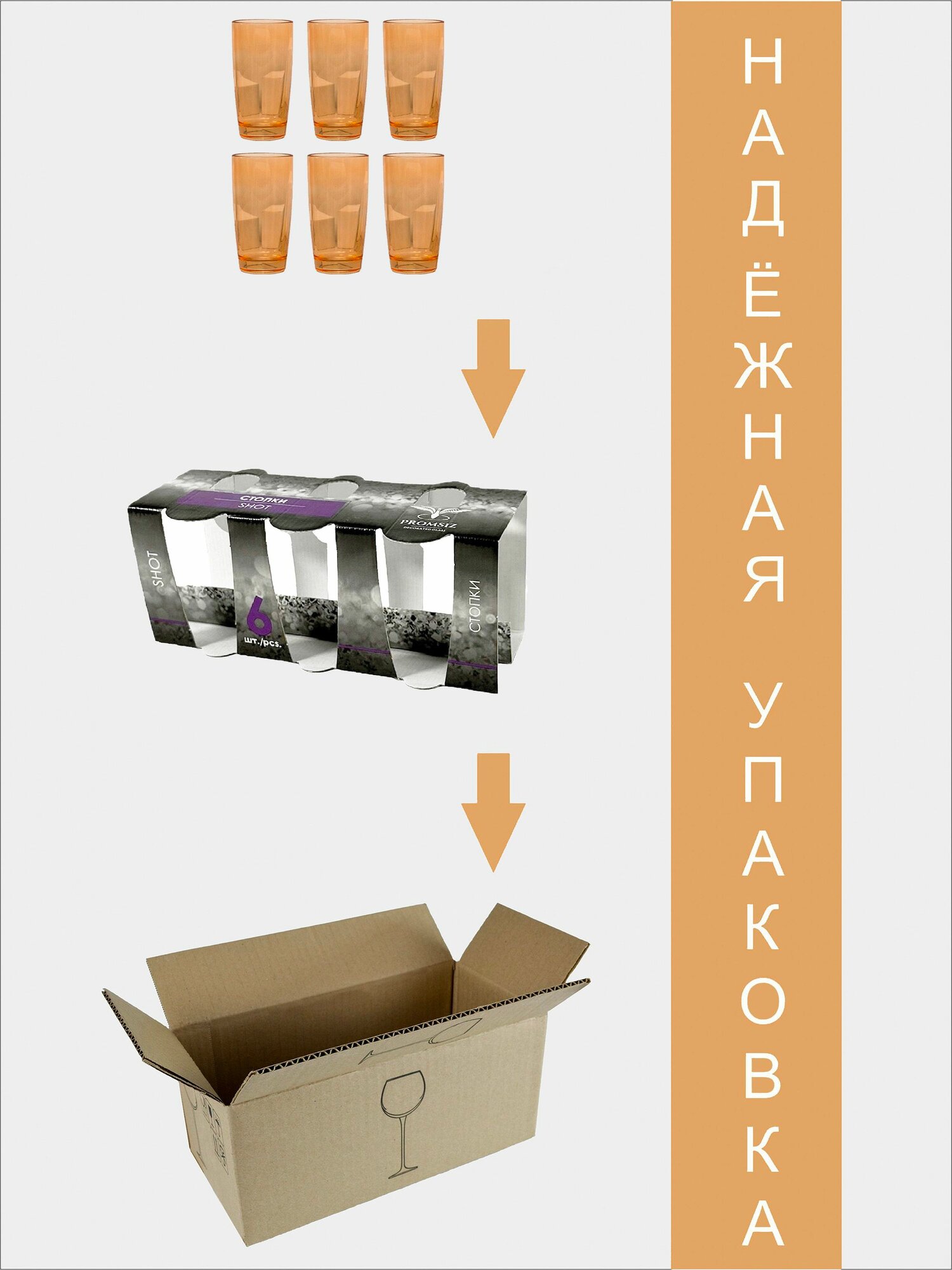 Подарочный набор стопок PROMSIZ оранжевый глянец, 60 мл, 6 шт. интересное: