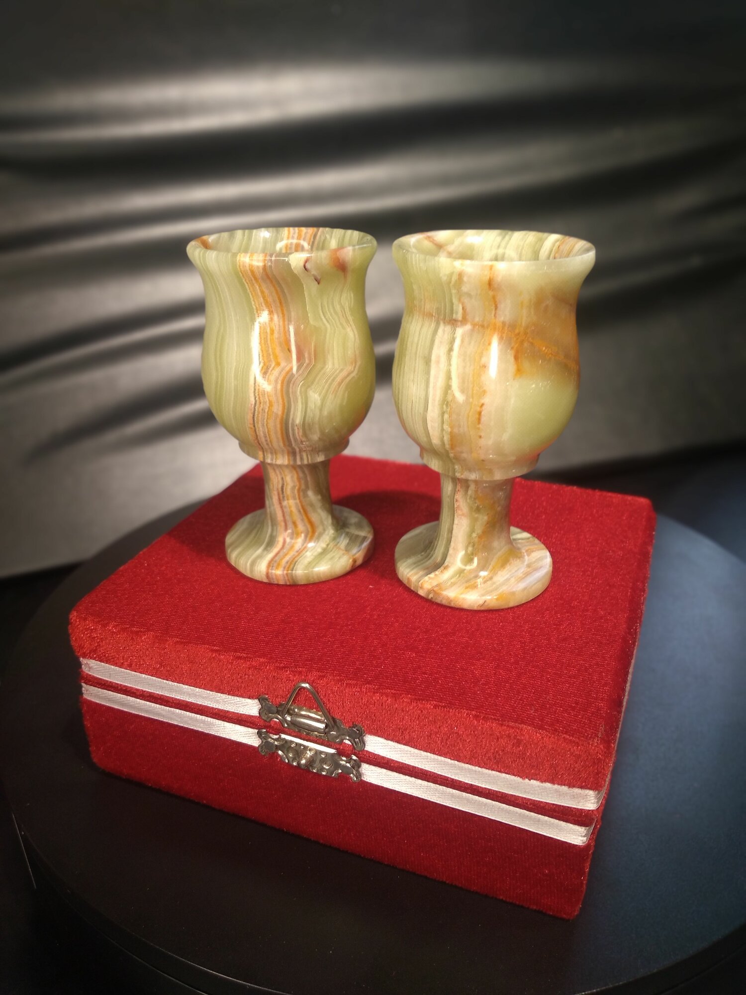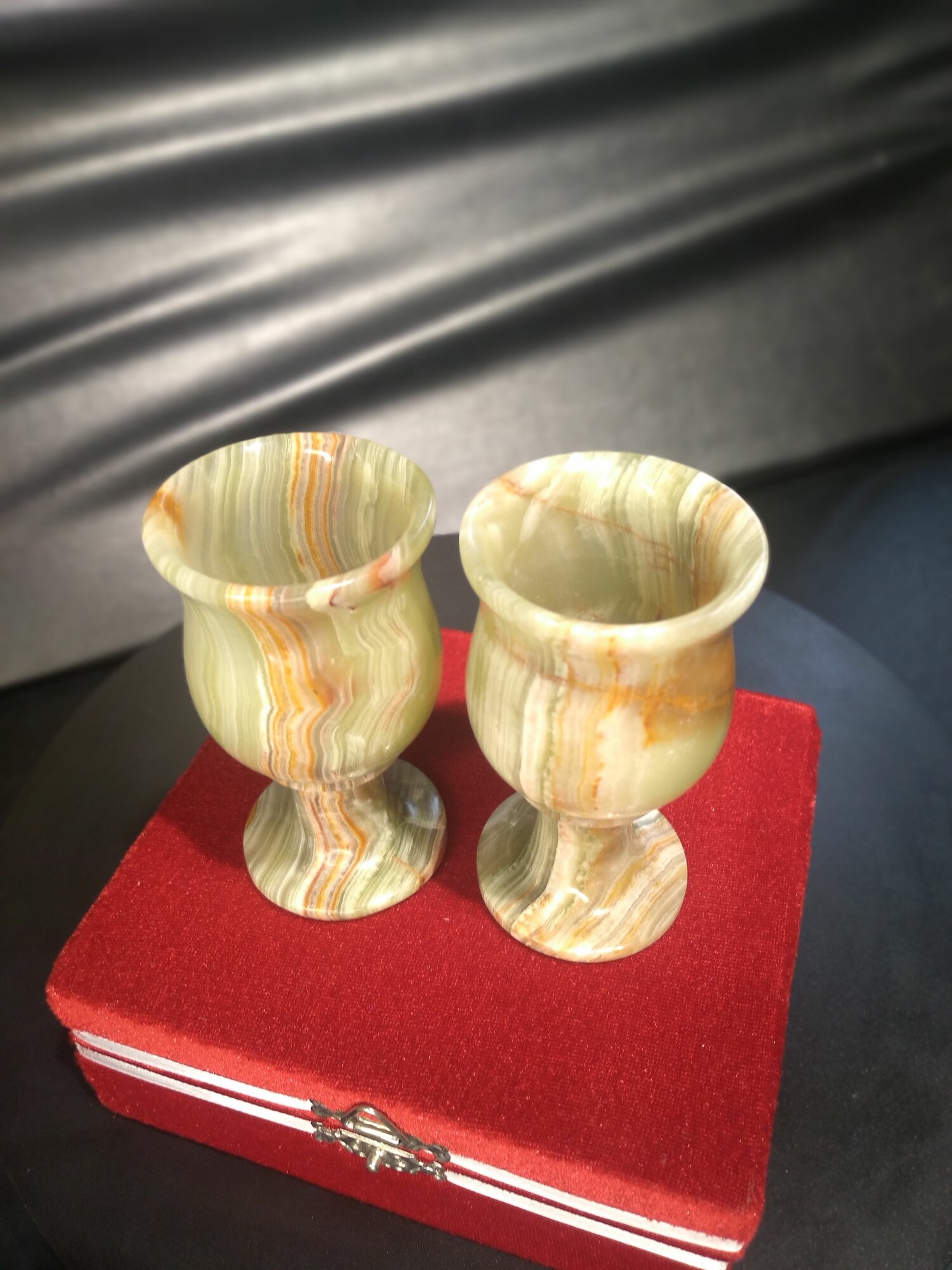 Набор рюмок из натурального полудрагоценного оникса в бархатной упаковке интересное: