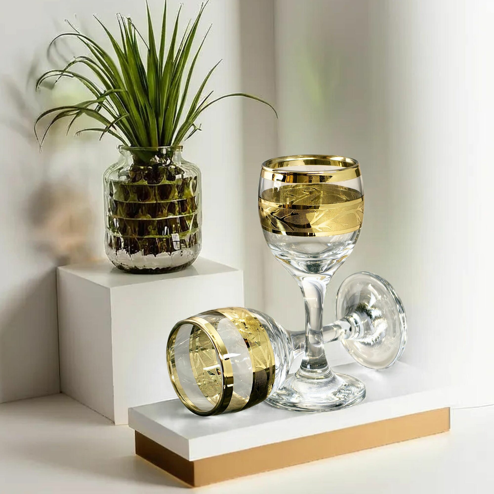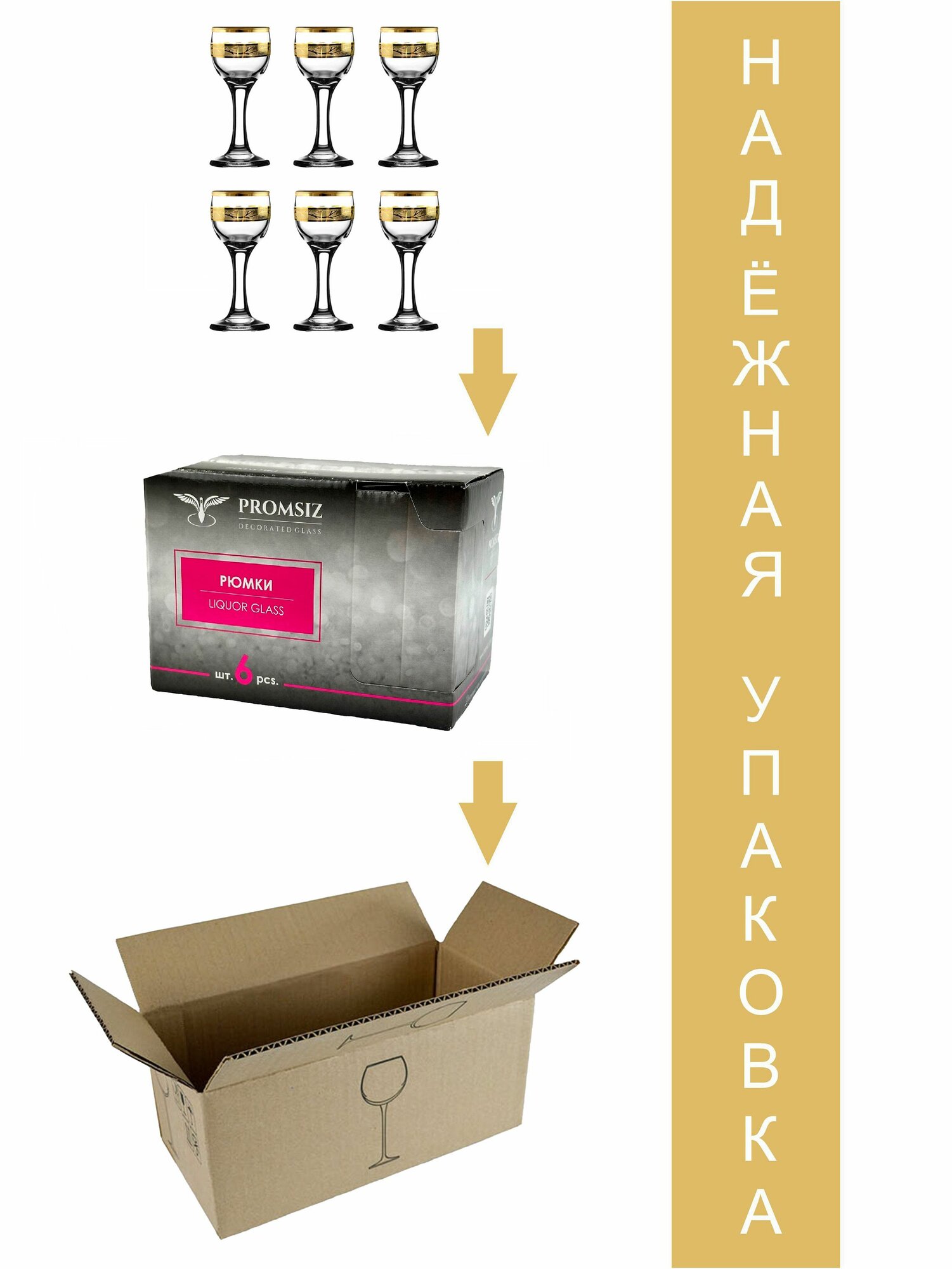 Подарочный набор стеклянных рюмок с алмазной гравировкой PROMSIZ версаль голд, 60 мл, 6 шт.