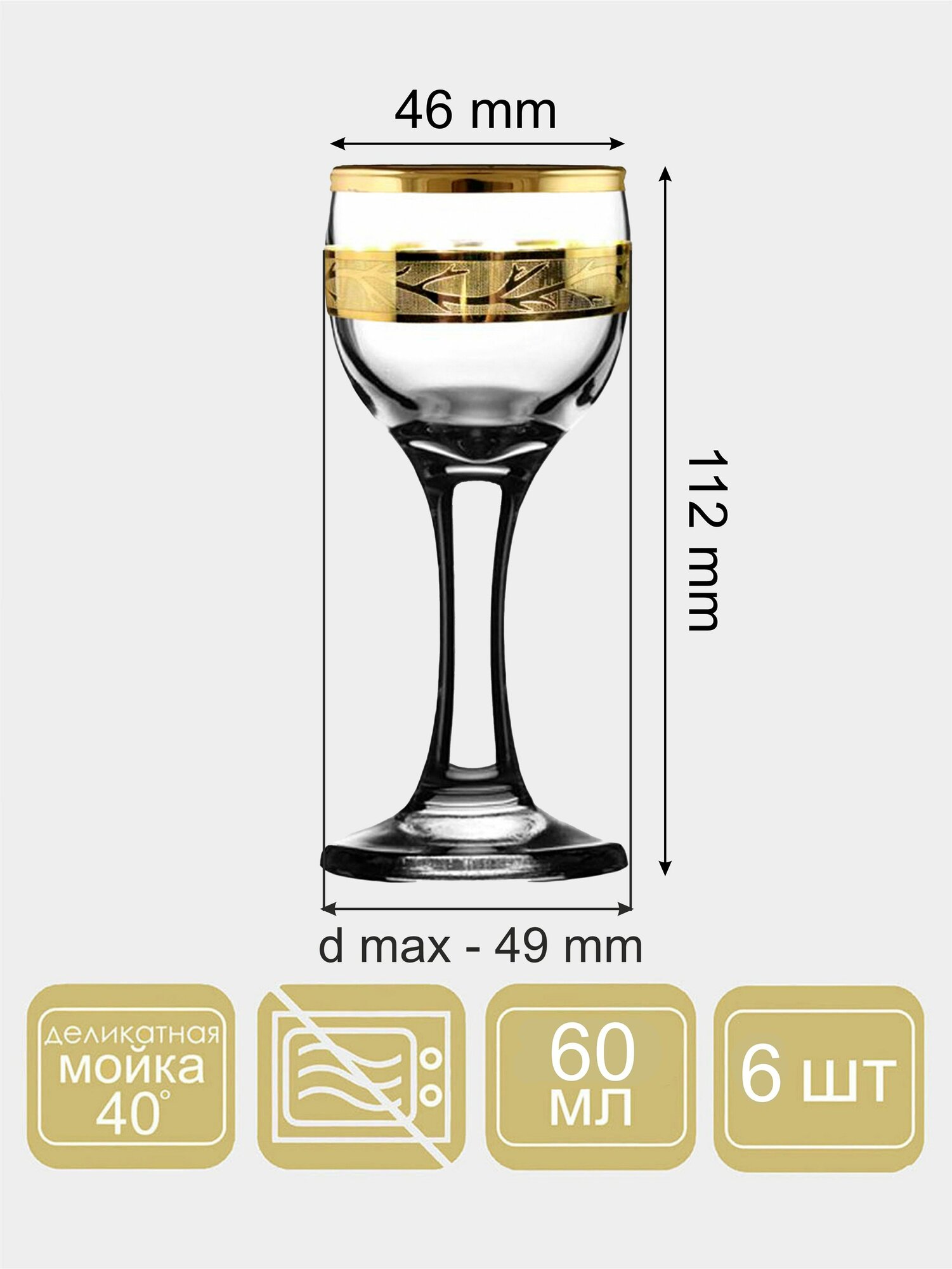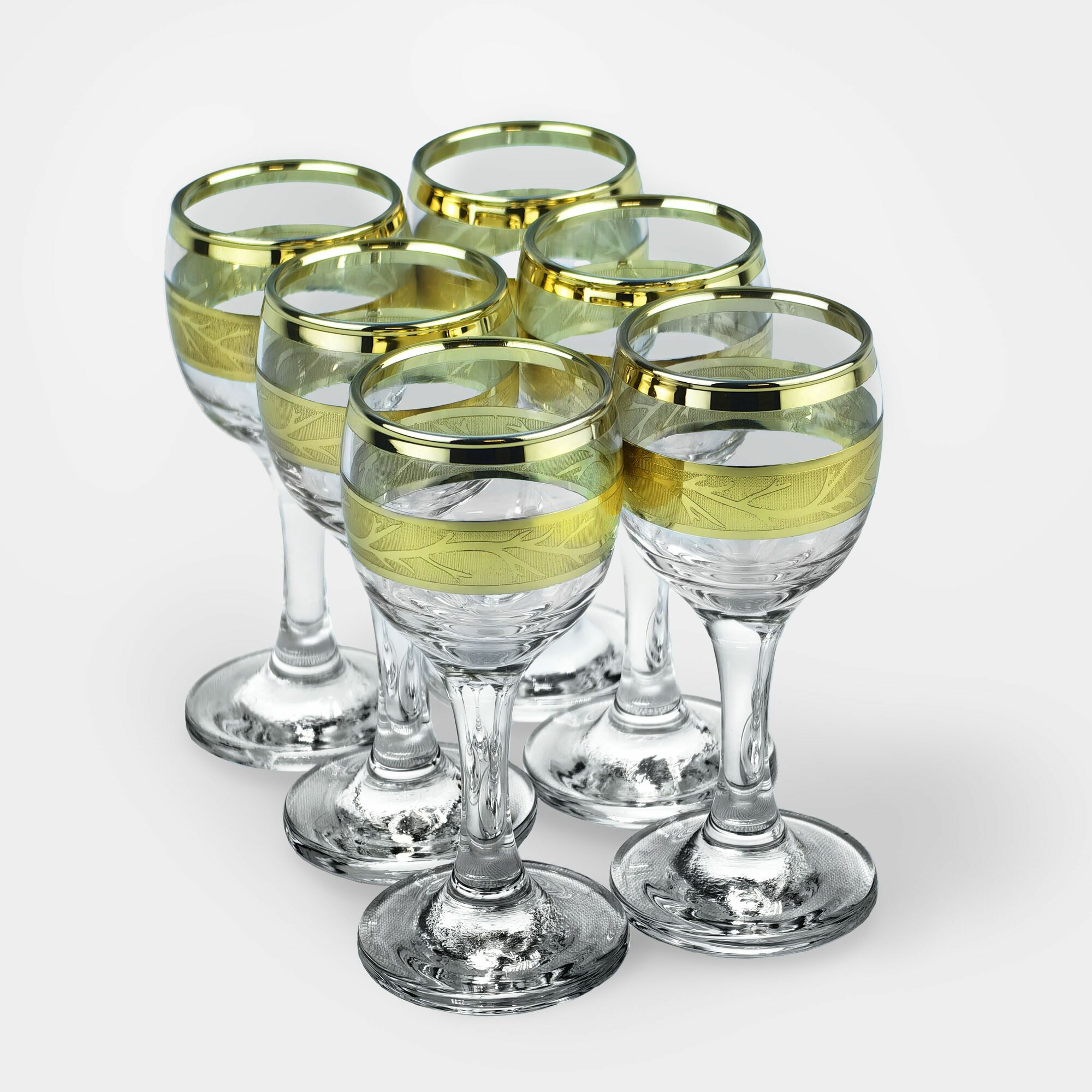 Подарочный набор стеклянных рюмок с алмазной гравировкой PROMSIZ золотая ветвь, 60 мл, 6 шт. интересное: