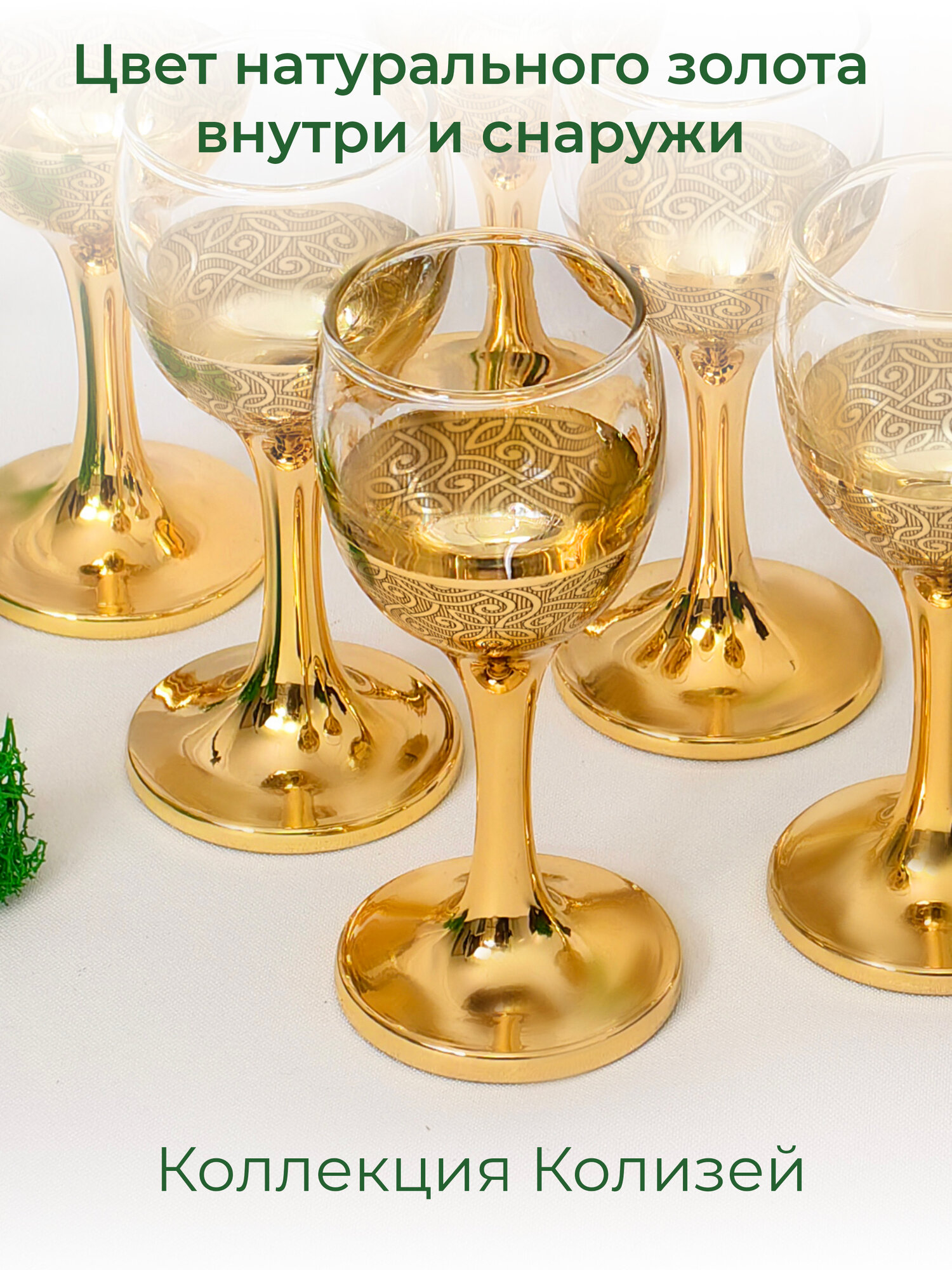 Подарочный набор стеклянных рюмок с алмазной гравировкой PROMSIZ версаль голд, 60 мл, 6 шт.