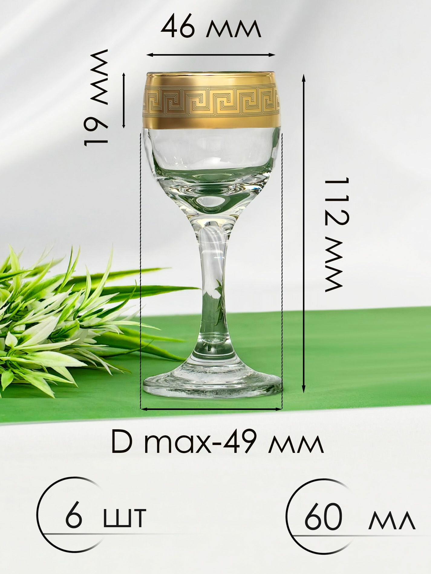 Подарочный набор стеклянных рюмок с алмазной гравировкой PROMSIZ золотая ветвь, 60 мл, 6 шт.