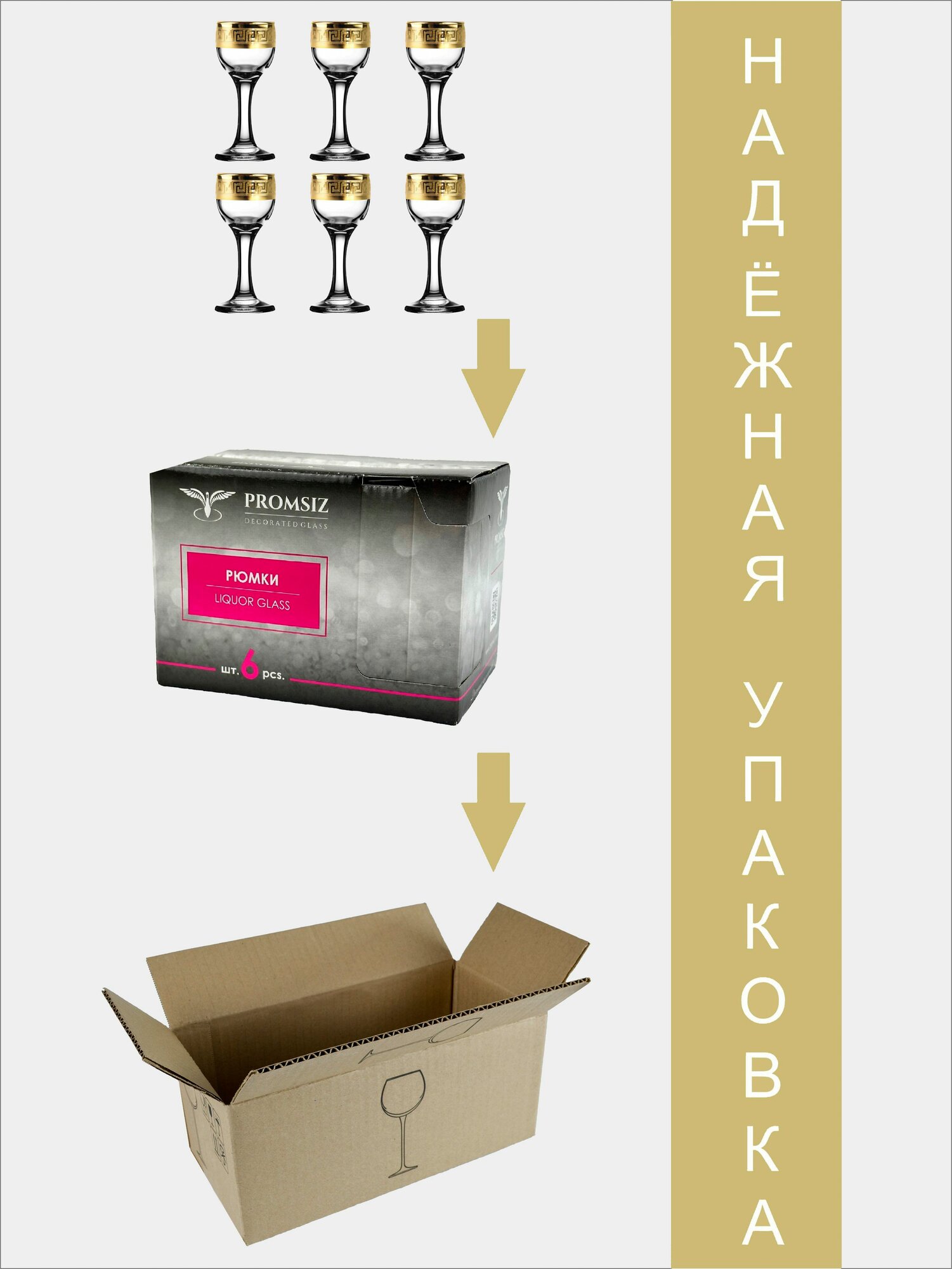 Подарочный набор стеклянных рюмок с алмазной гравировкой PROMSIZ версаль голд, 60 мл, 6 шт. интересное: