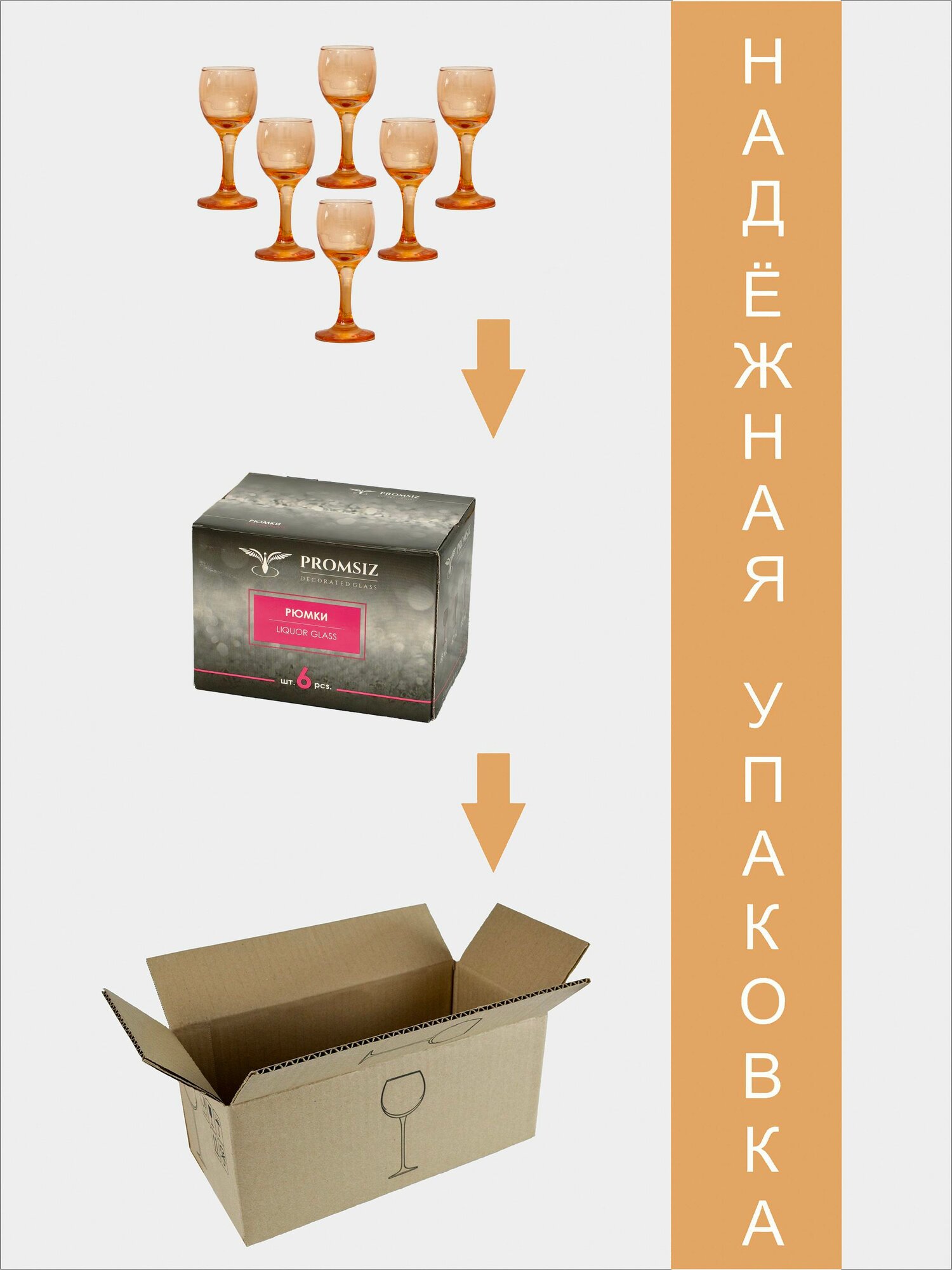 Подарочный набор стеклянных рюмок PROMSIZ оранжевый глянец, 60 мл, 6 шт. интересное: