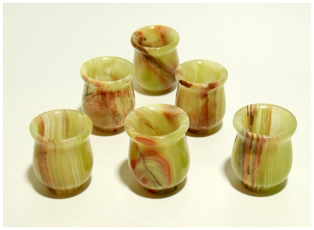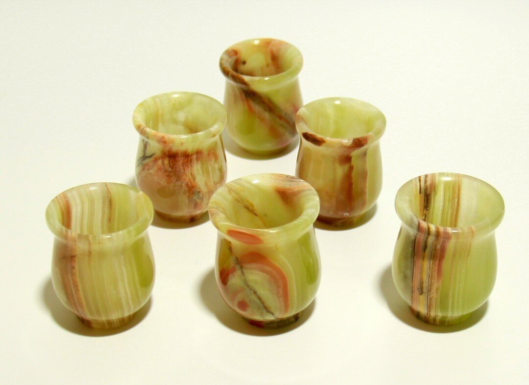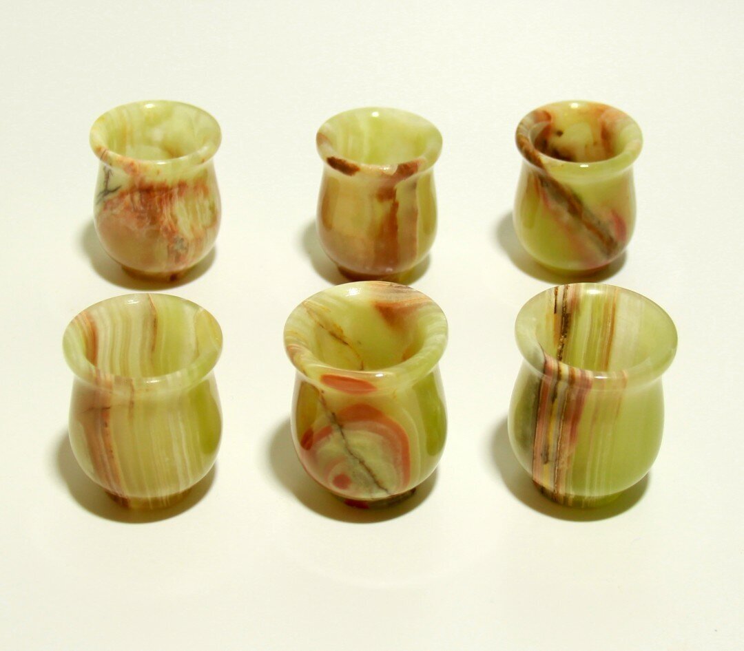 Стопки из натурального камня Оникс набор 6 штук 5 см х 3,8 см , в подарочной упаковке, 20 мл. интересное: