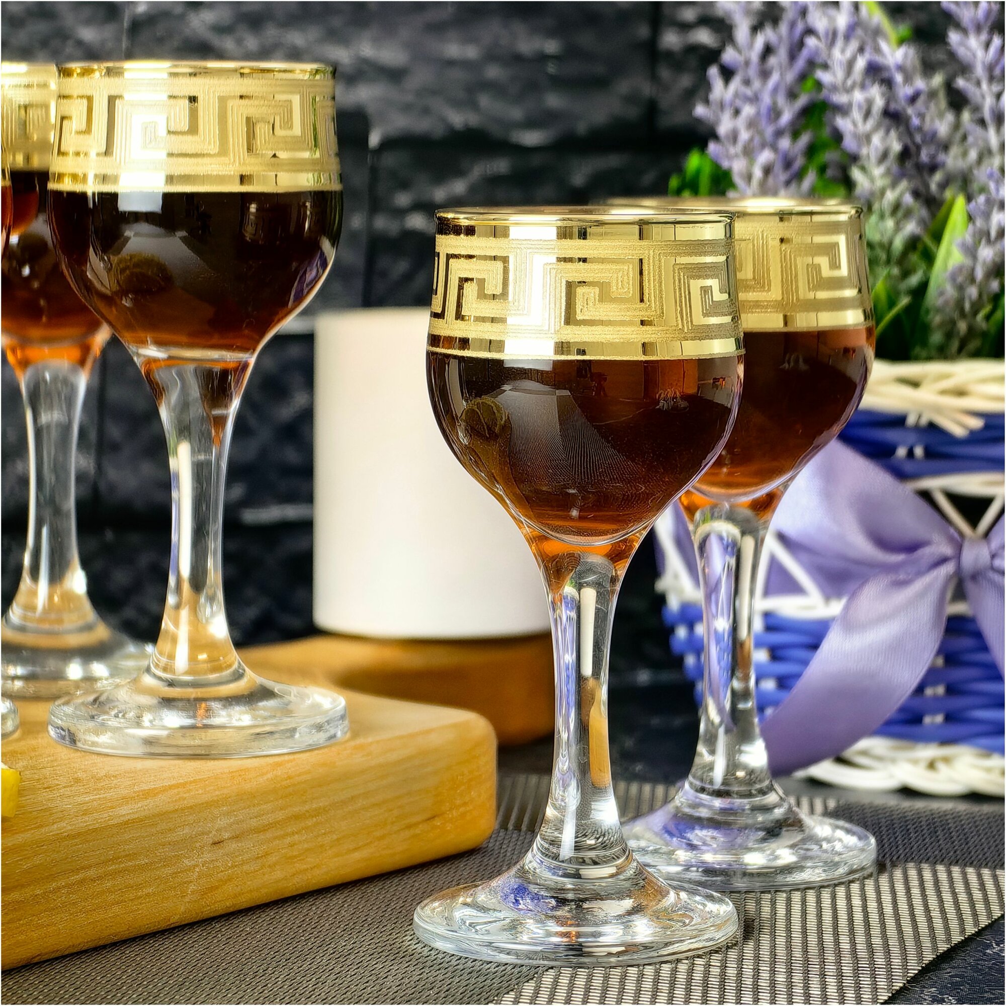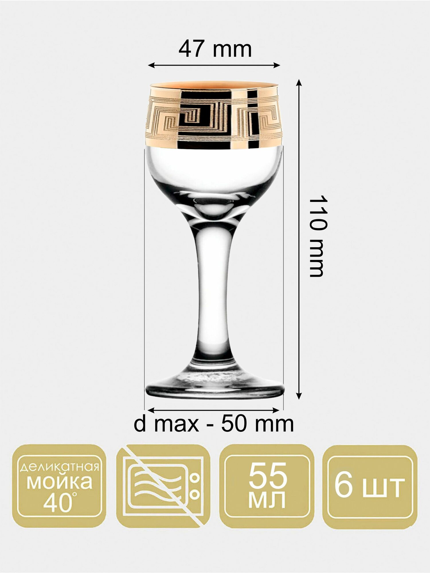 Набор рюмок в подарочной упаковке с алмазной гравировкой PROMSIZ греческий узор, 55 мл, 6 шт.