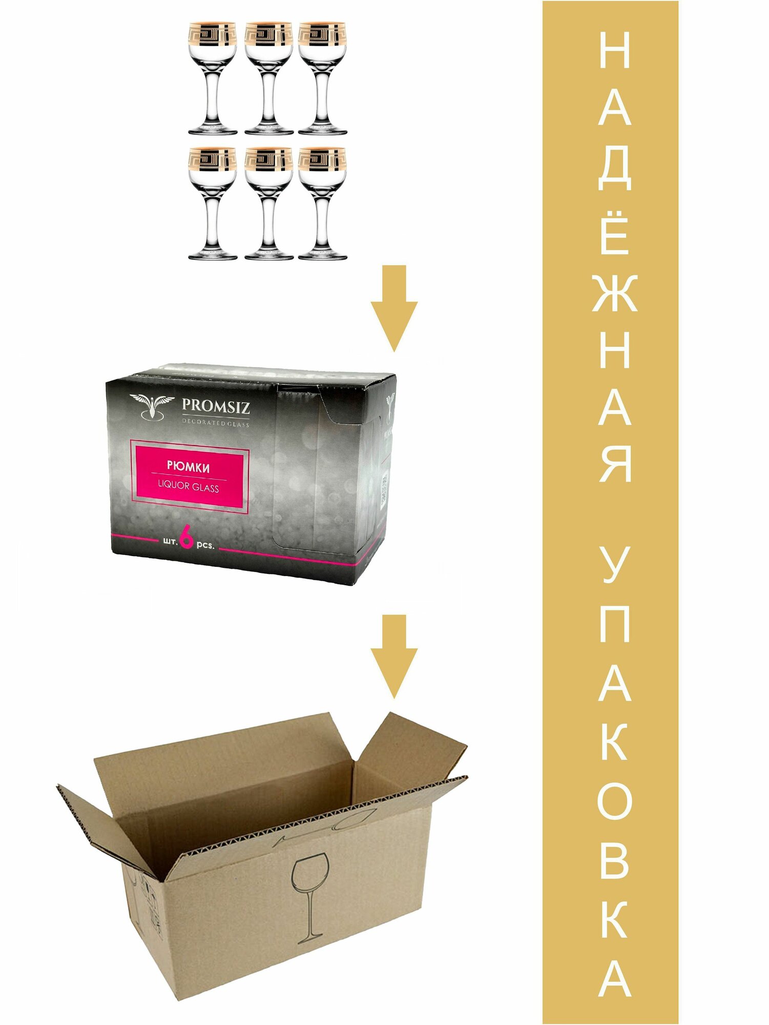 Набор рюмок в подарочной упаковке с алмазной гравировкой PROMSIZ цезарь, 55 мл, 6 шт. интересное:
