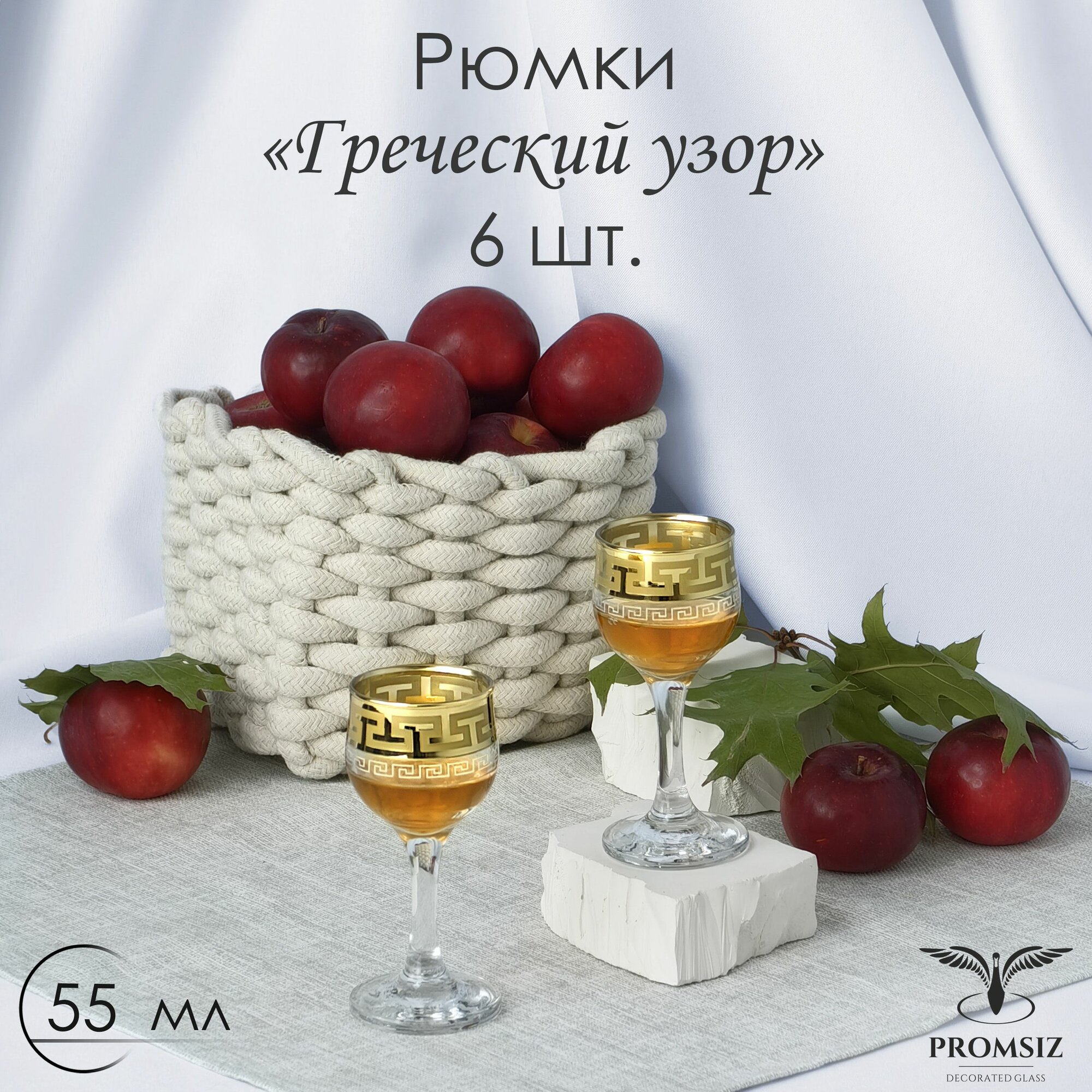 Набор рюмок в подарочной упаковке с алмазной гравировкой PROMSIZ греческий узор, 55 мл, 6 шт. интересное:
