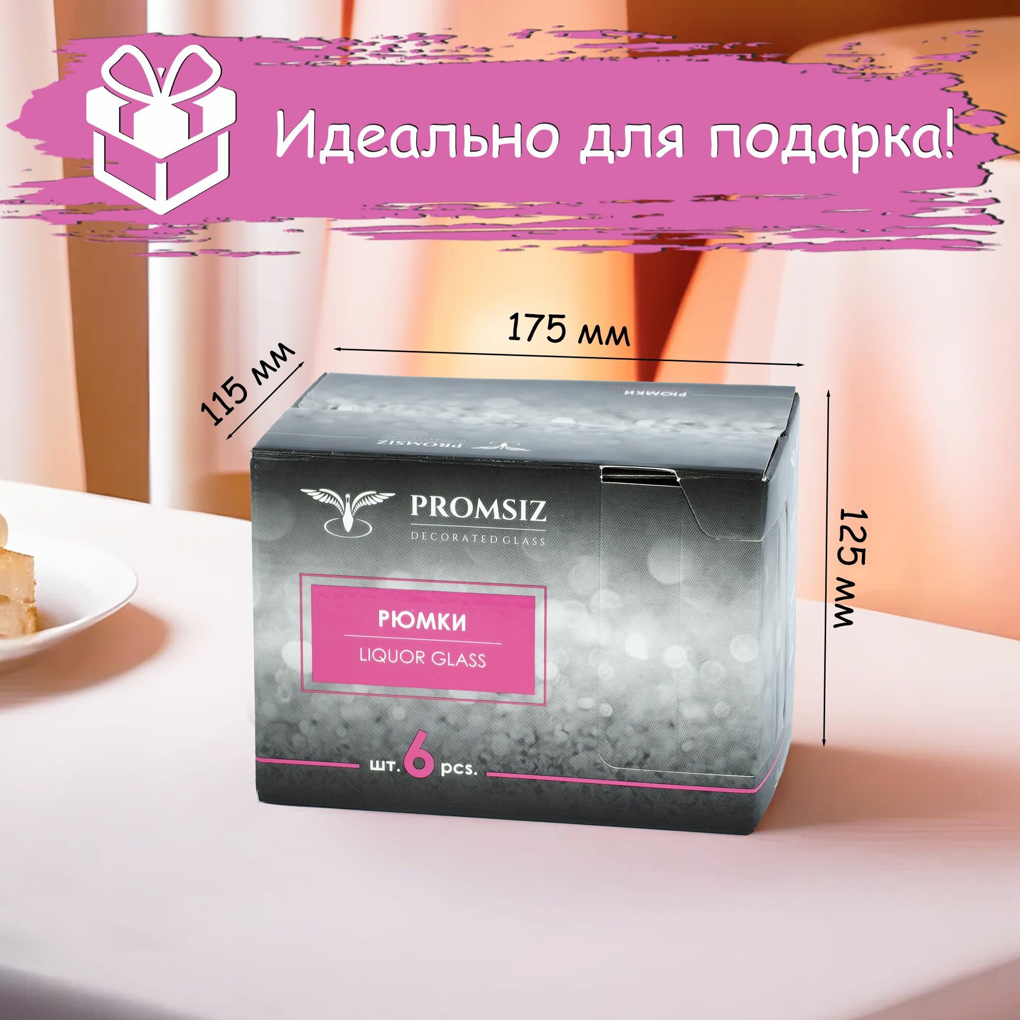 Набор рюмок в подарочной упаковке с алмазной гравировкой PROMSIZ цезарь, 55 мл, 6 шт.