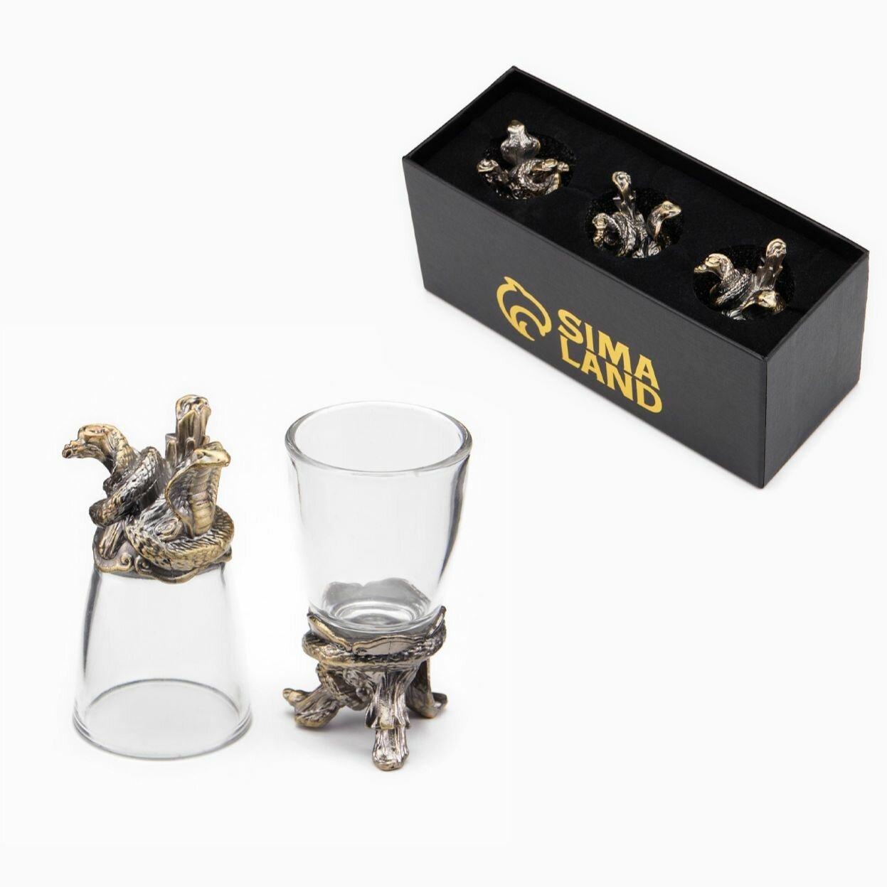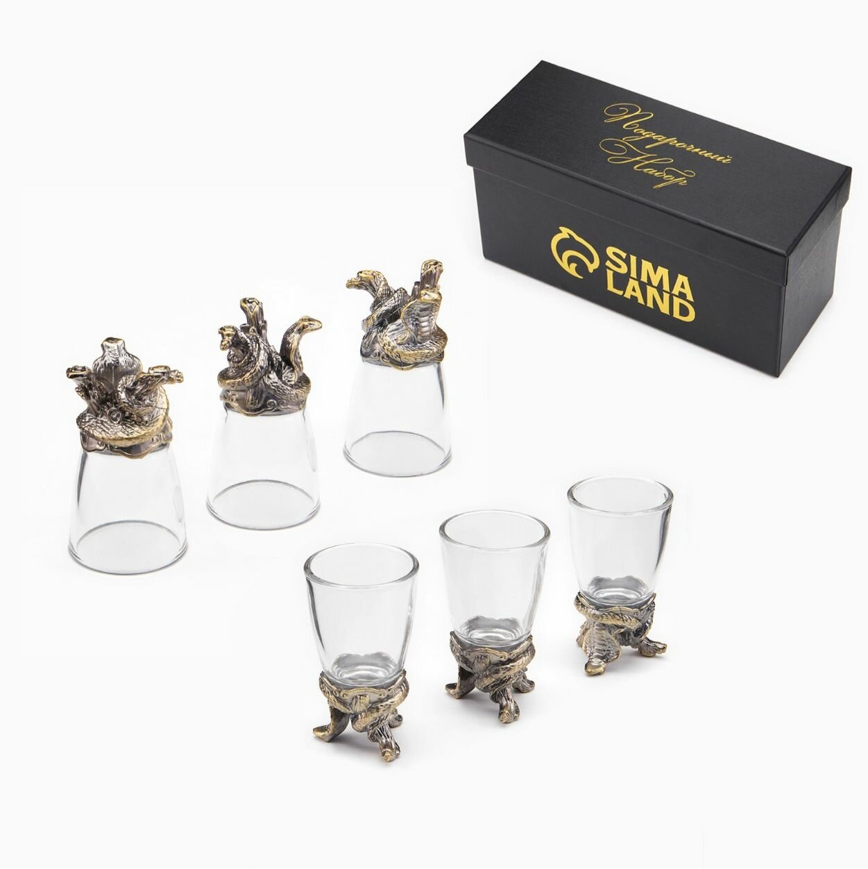 Купить Стопки для водки символ года "Змеи", набор на 3 персоны, стопка 30 мл, новый год, бронза