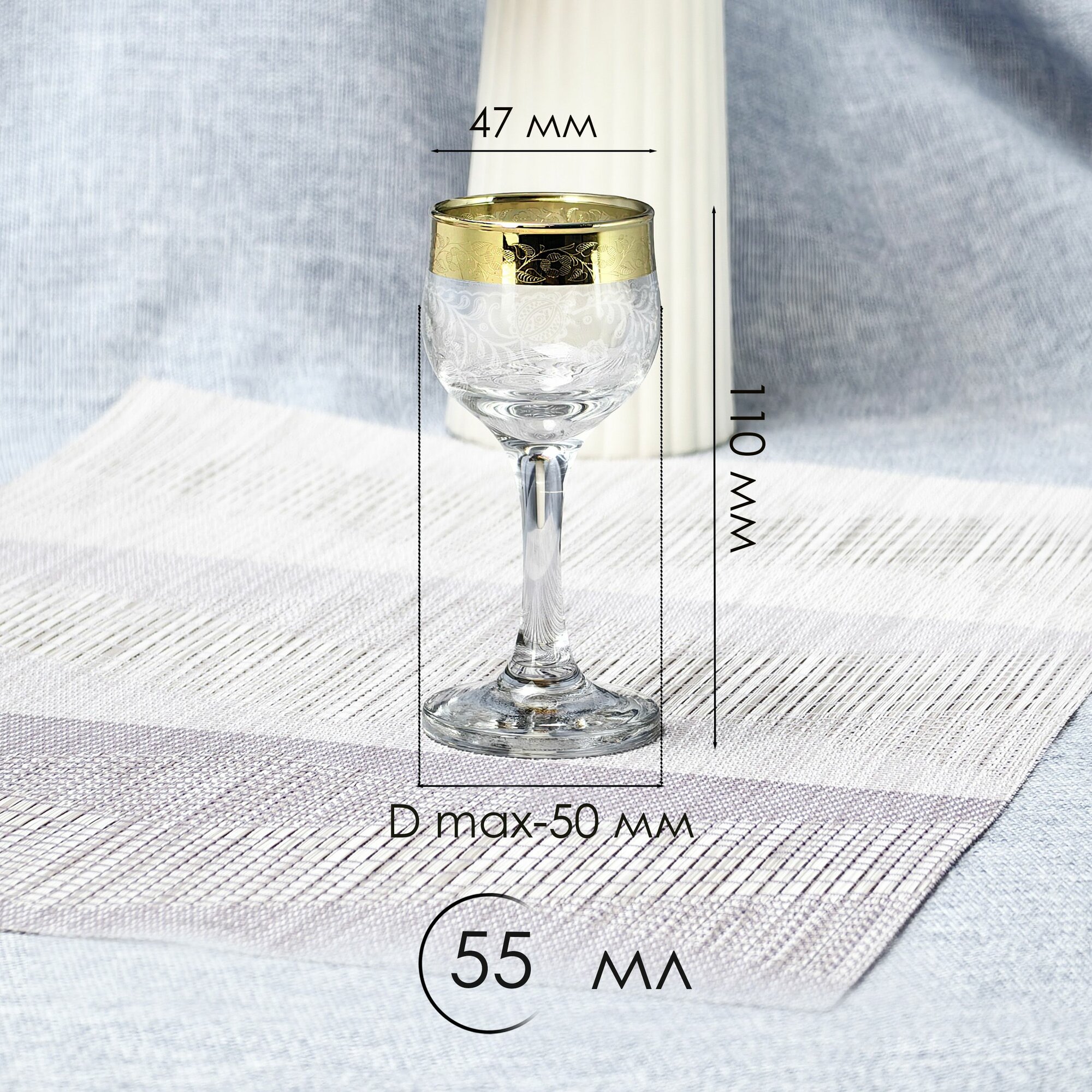 Подарочный набор рюмок с алмазной гравировкой PROMSIZ "КАМЕЯ" / 55 мл, 6 шт.