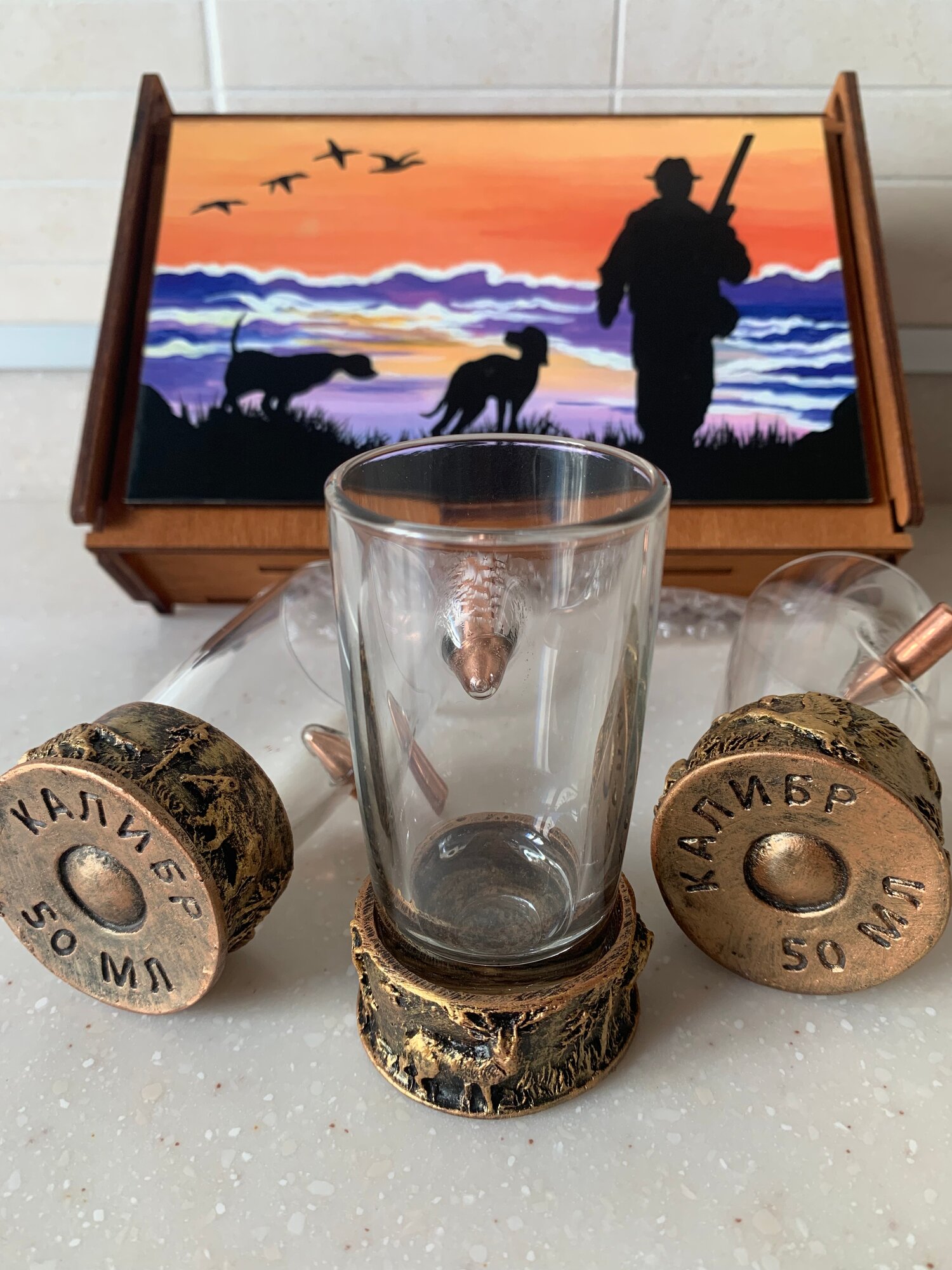 Подарочный набор стопок для рыбака в деревянной коробке, 3 шт, 50 мл, стекло, полистоун, АБ "Сувениры" интересное: