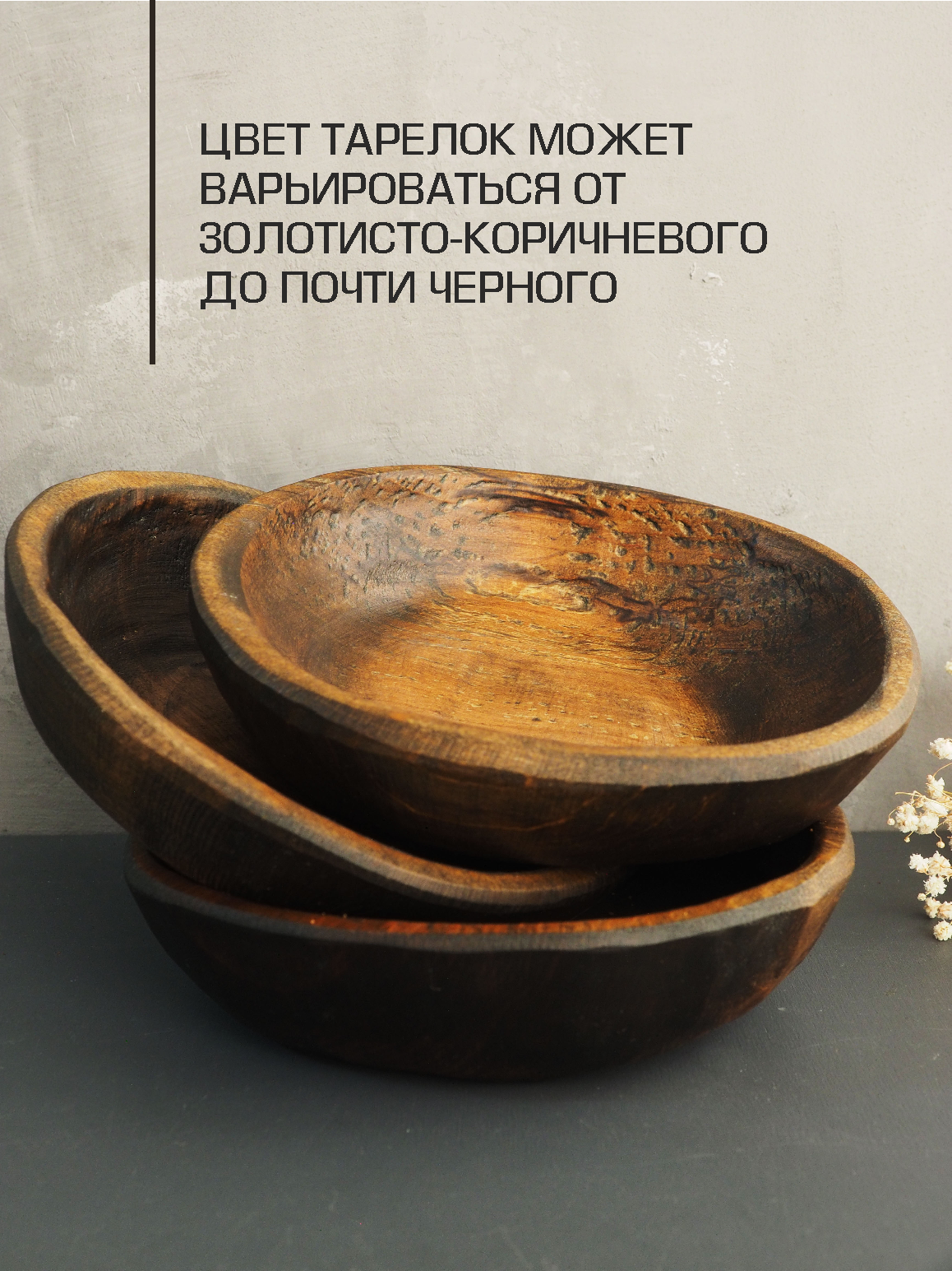 Набор из двух глубоких деревянных тарелок для сервировки стола интересное: