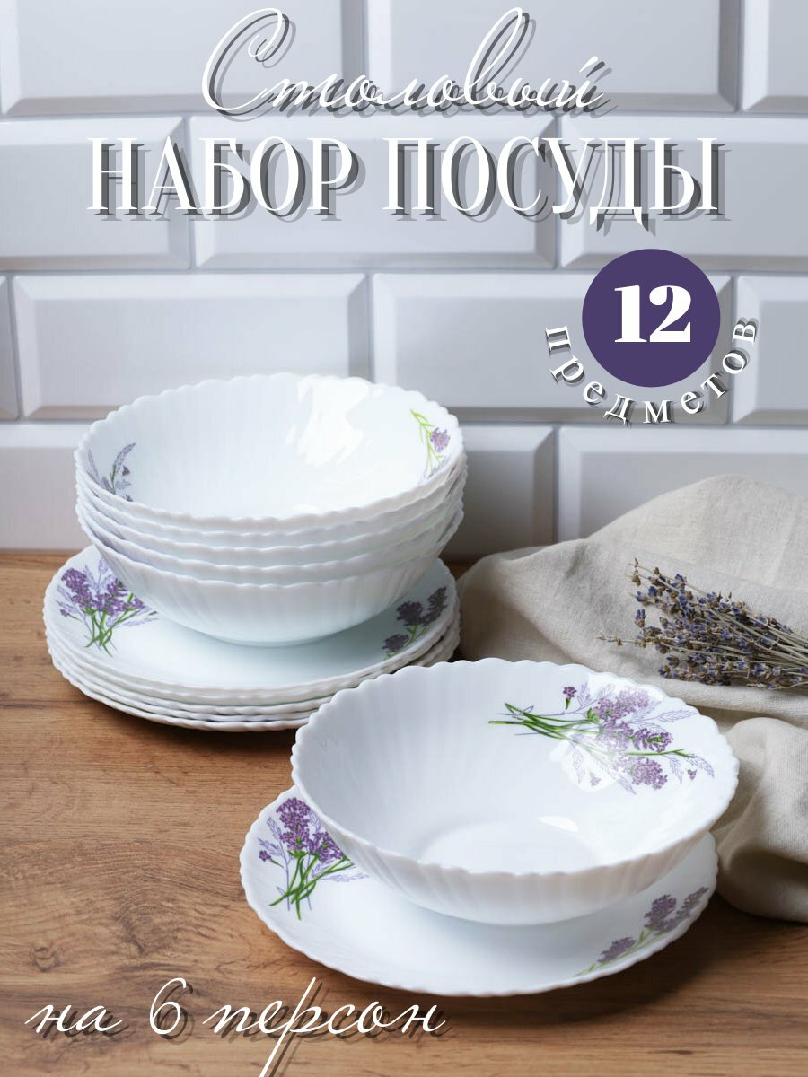 Купить Набор столовый посуды "Букет лаванды" 12 предметов, набор тарелок на 6 персон