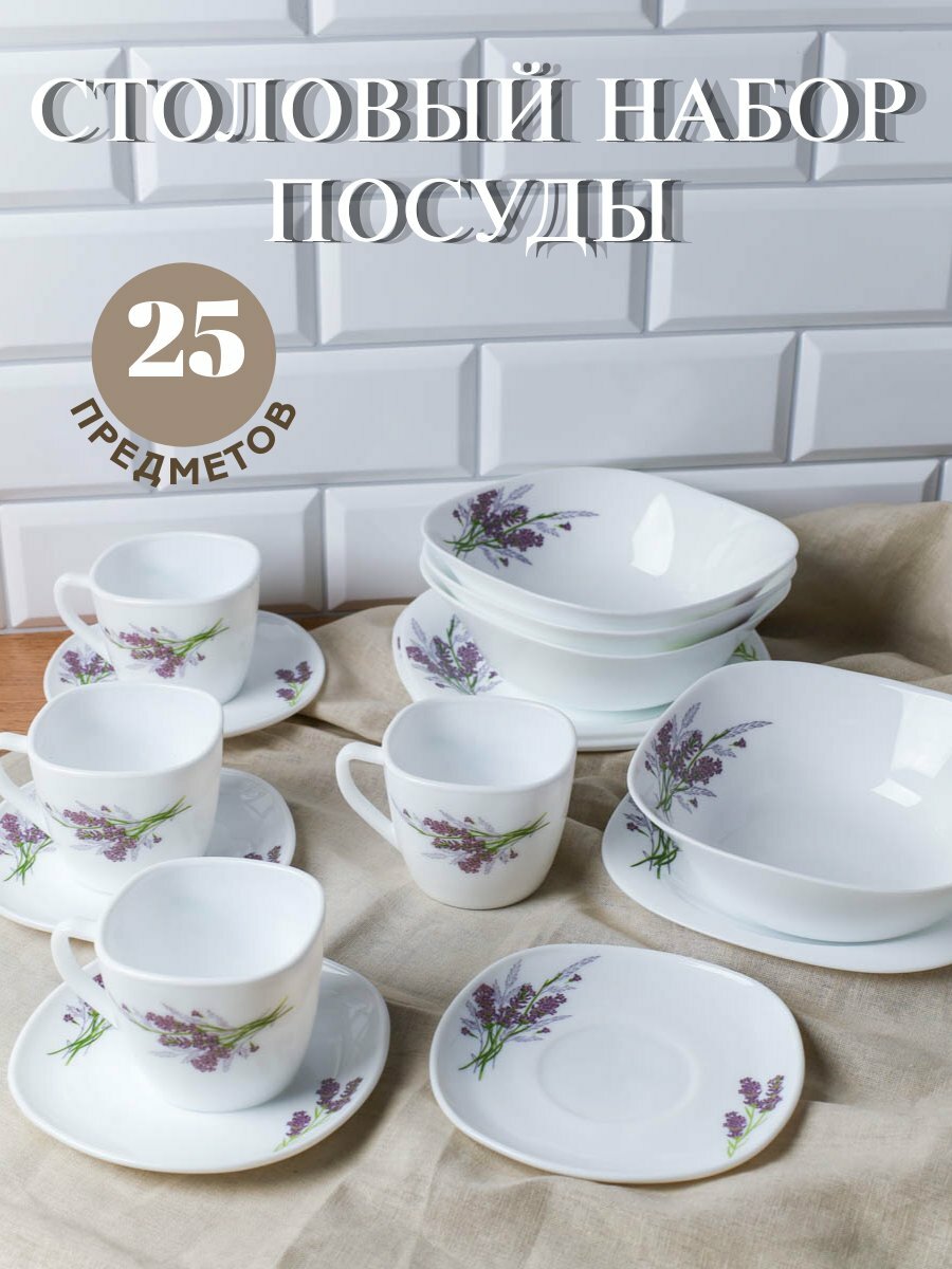 Набор столовой посуды "Букет лаванды" 25 предметов, квадратный сервиз на 6 персон интересное: