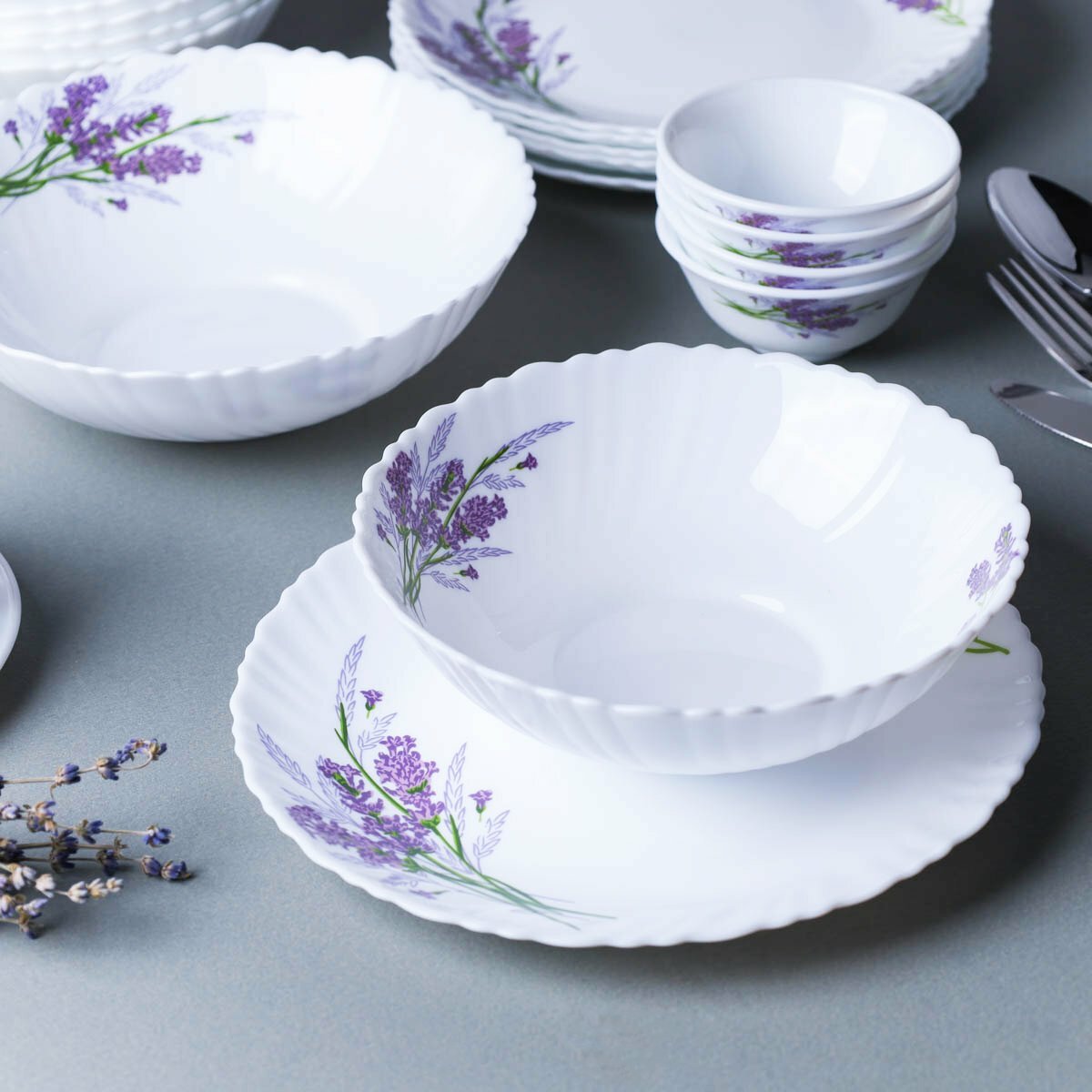 Набор столовый посуды "Букет лаванды" 36 предметов, сервиз на 6 персон интересное: