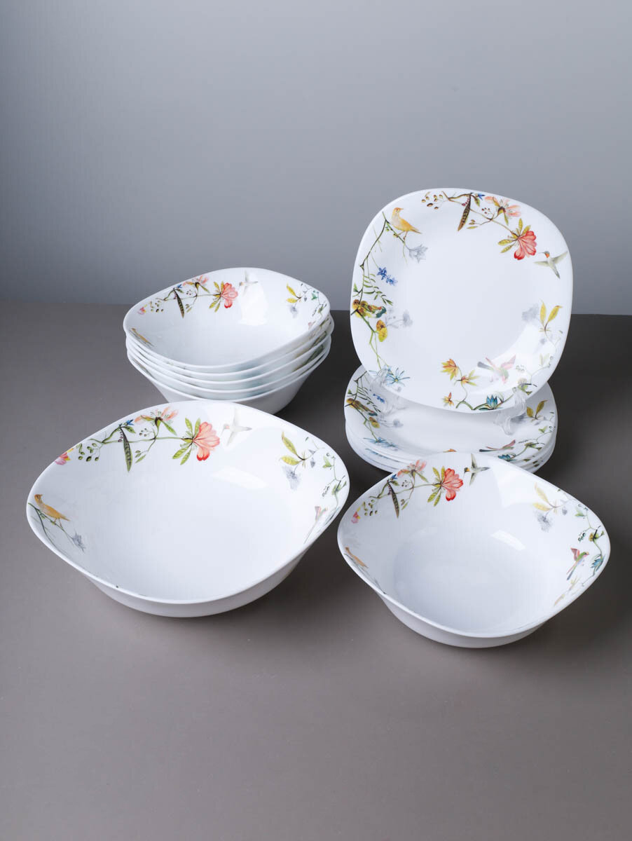 Набор тарелок и салатников с крышками WHITE LILY "Colibri" 16 предметов