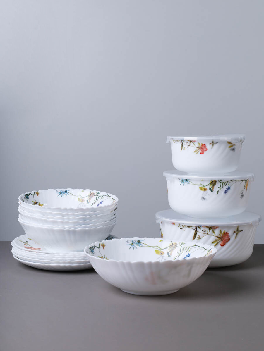 Купить Набор тарелок и салатников с крышками WHITE LILY "Colibri" 16 предметов