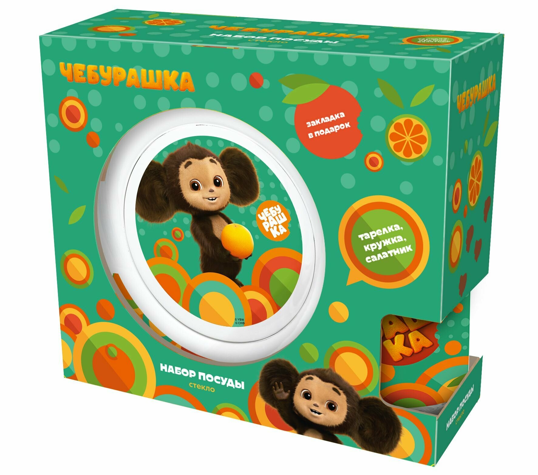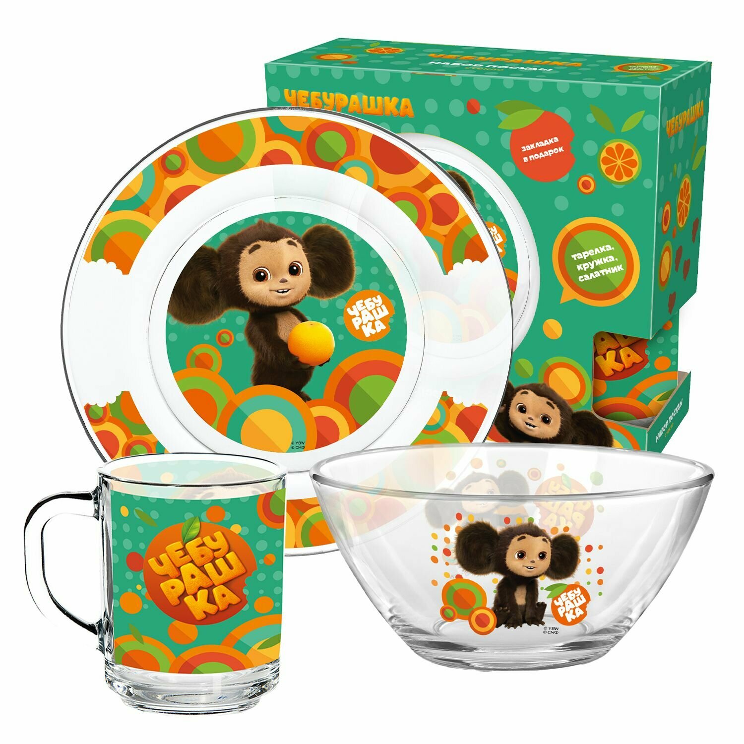 Купить Набор детской стеклянной посуды "Чебурашка", (3 предмета, подарочная упаковка, сервиз), стекло