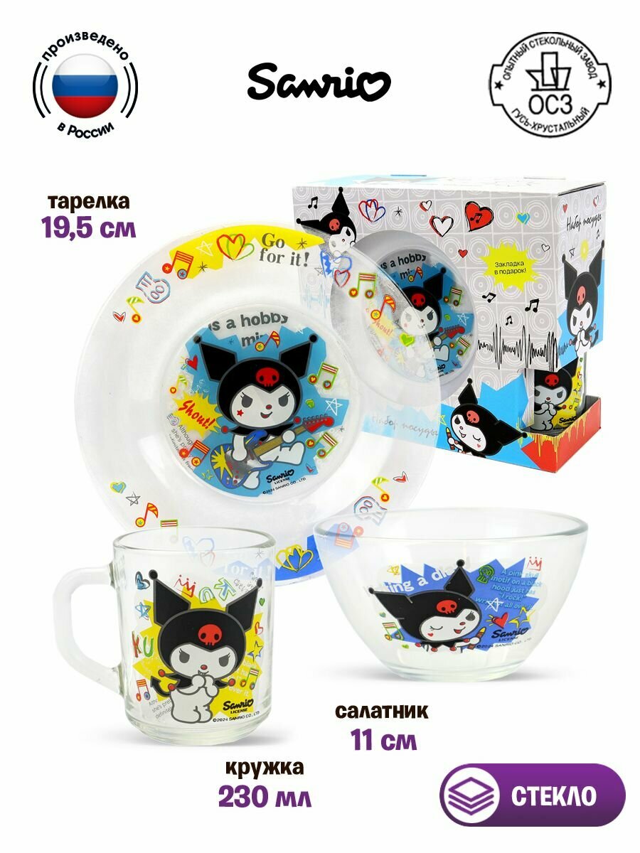 Детский сервиз / Набор детской стеклянной посуды ND Play / Куроми, Рок (3 предмета, спец-серия), 311022