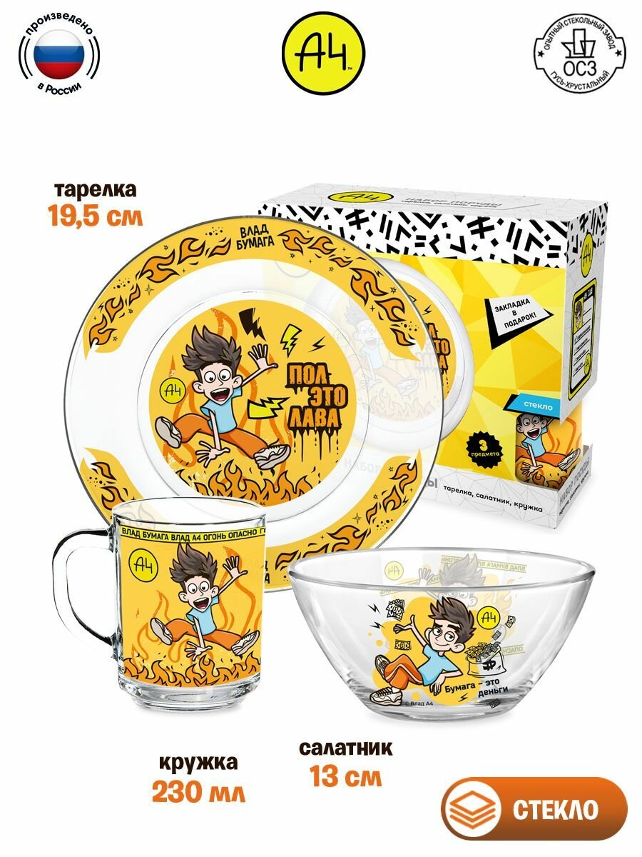 Набор детской посуды ND Play. Влад А4 Огонь (3 предмета, подарочная упаковка), спец-серия, стекло