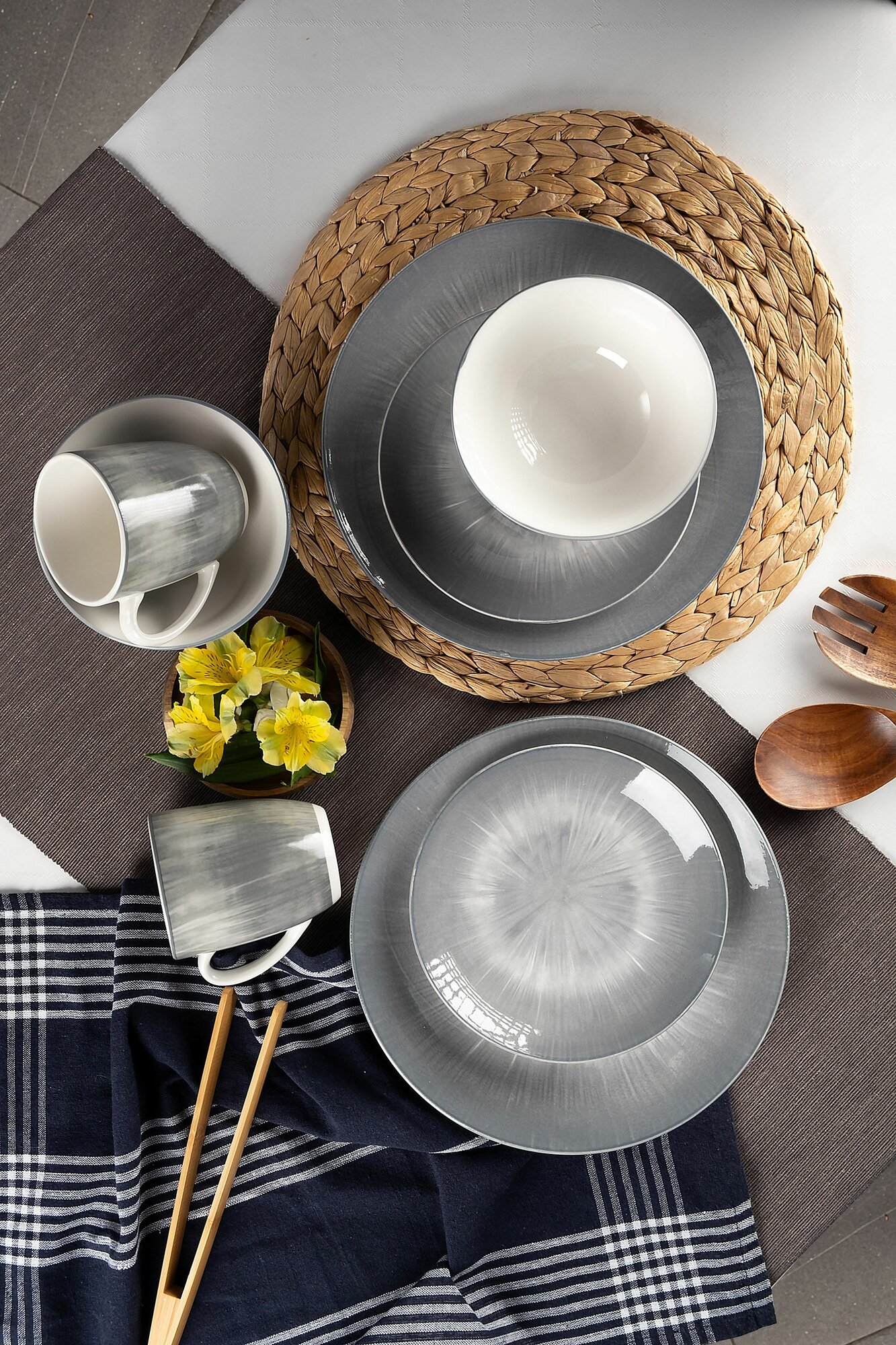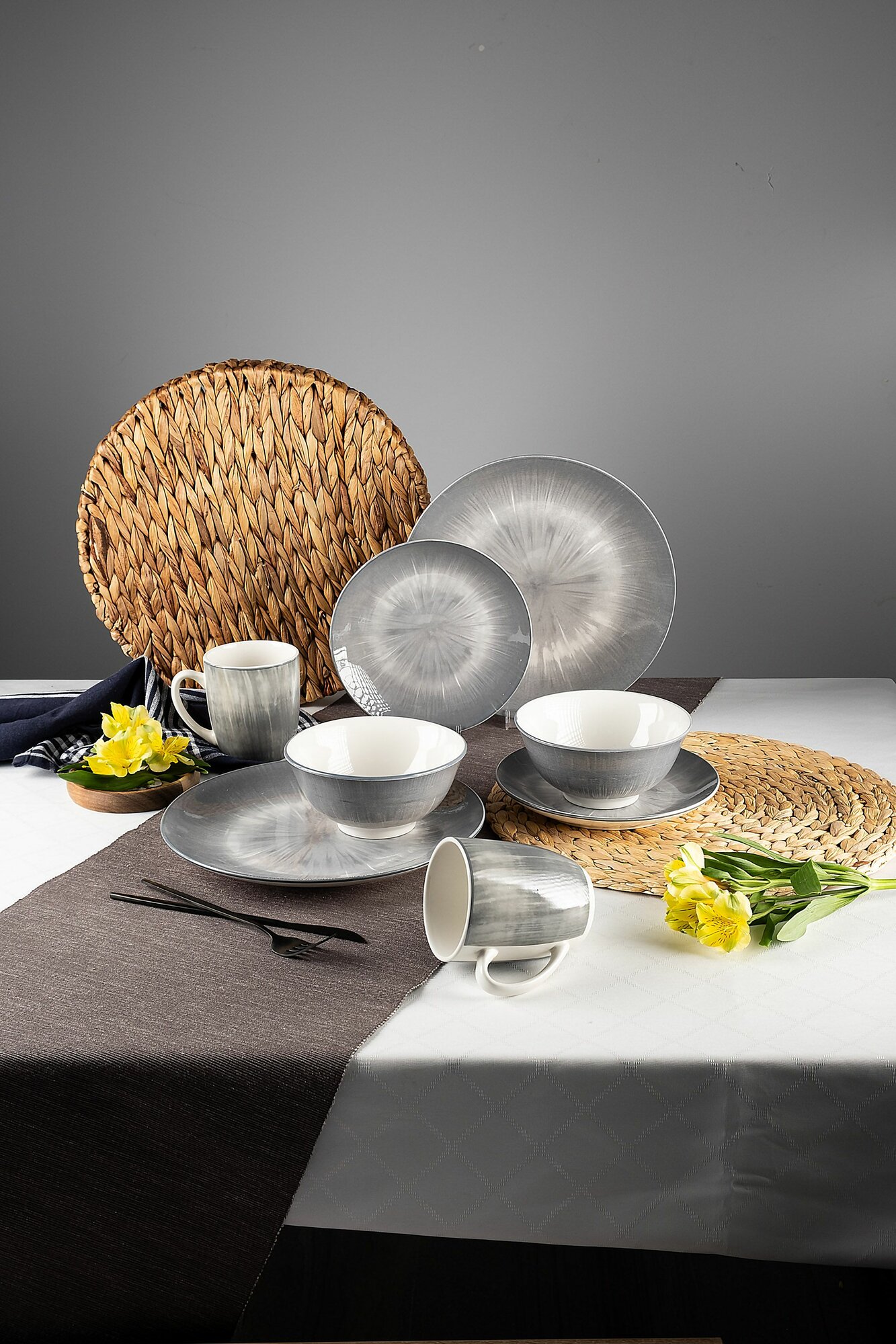 Набор посуды на 4 персоны 16 предметов фарфор "Eden grey", столовый сервиз обеденный