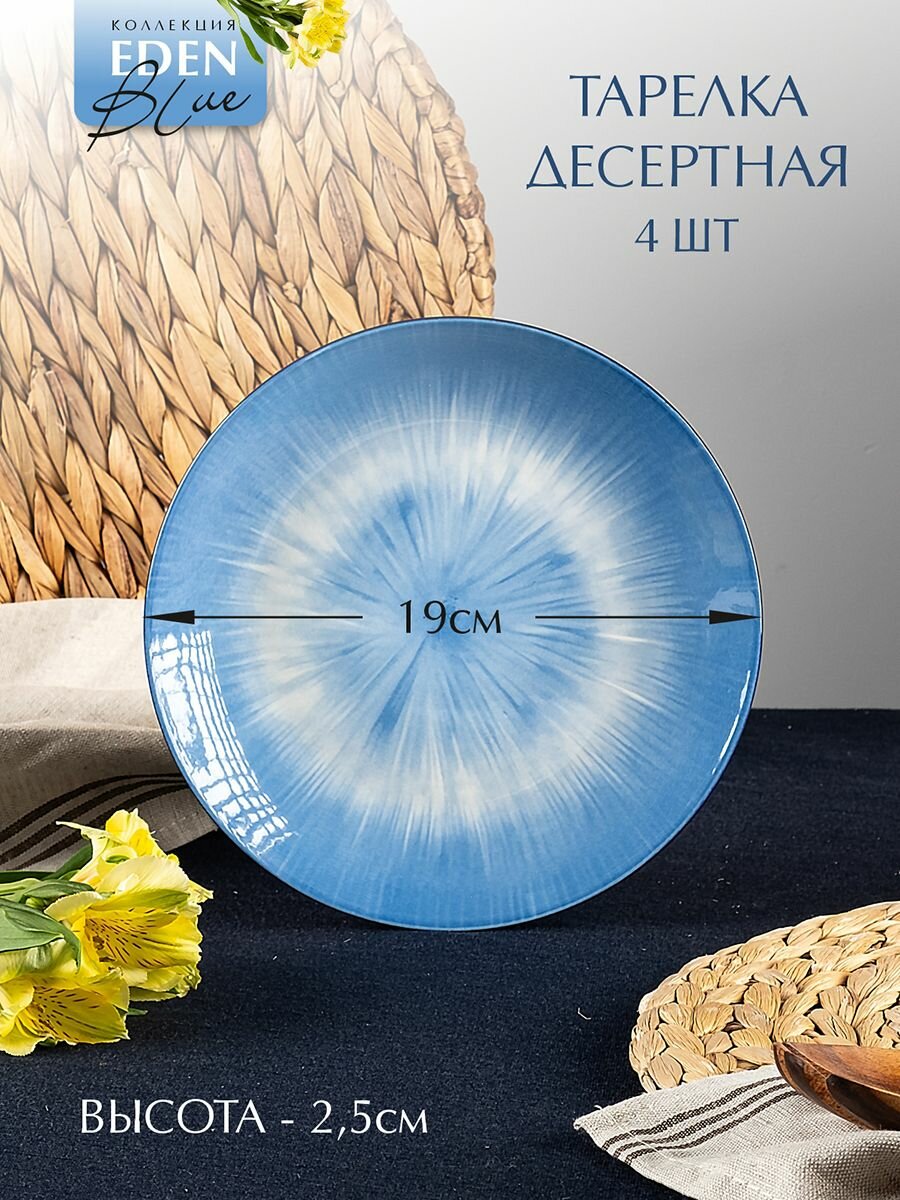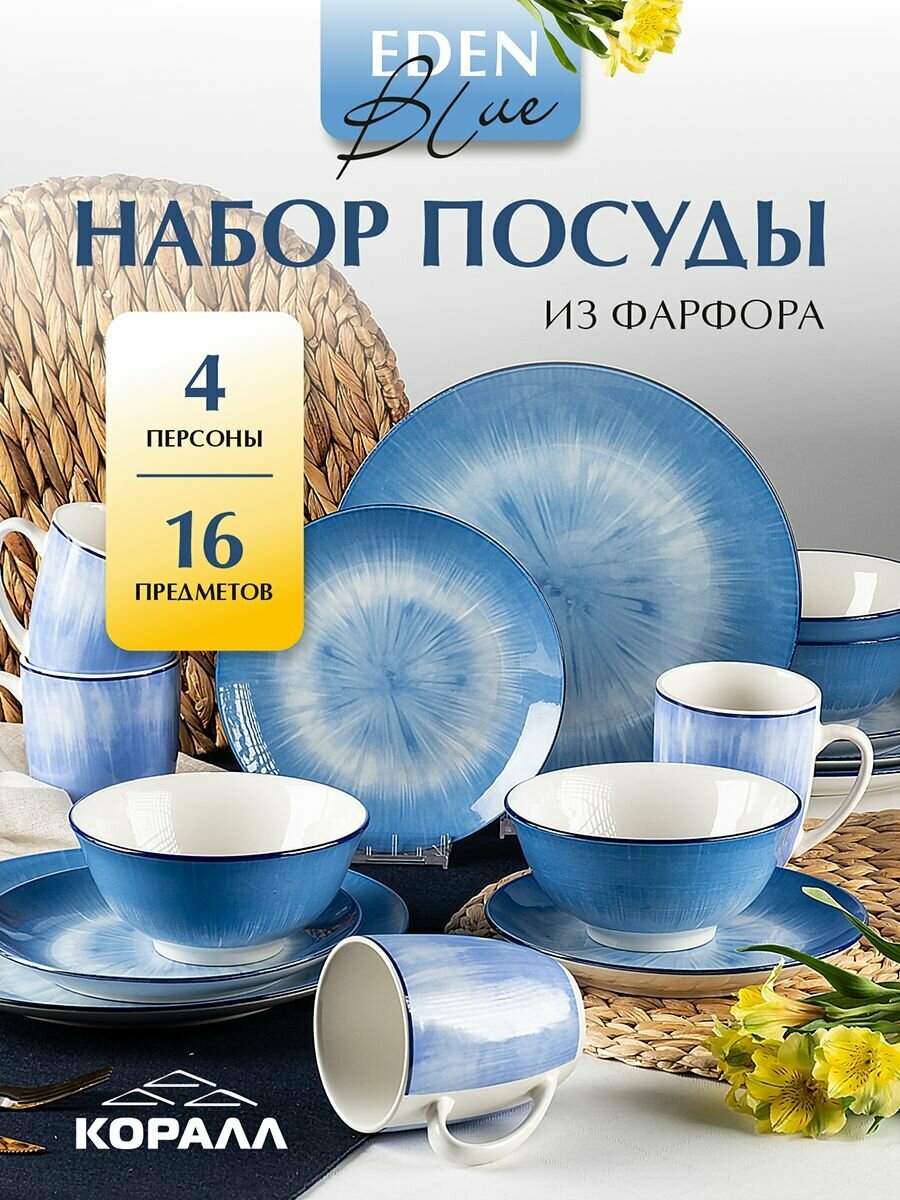 Купить Набор посуды на 4 персоны 16 предметов фарфор "Eden blue", столовый сервиз обеденный