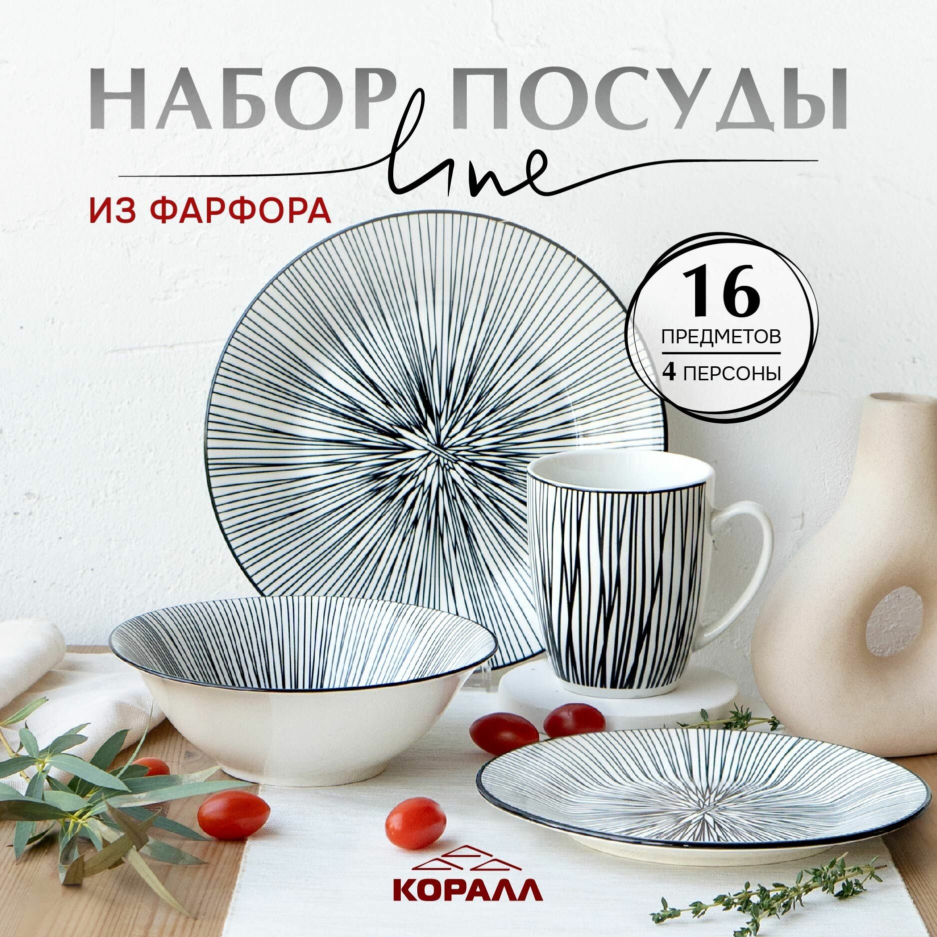СохранитьНабор посуды из фарфора "Line_2" на 4 персоны 16 предметов. Сервиз обеденный семейный интересное:
