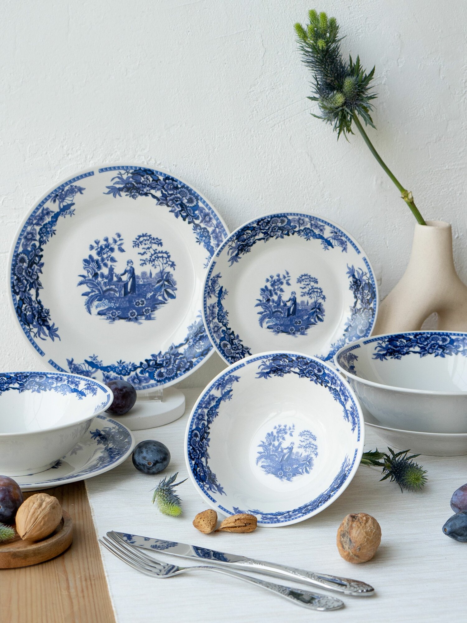 Набор посуды столовой фарфор 2 персоны 10 предметов "Blue calico" столовый сервиз обеденный Коралл