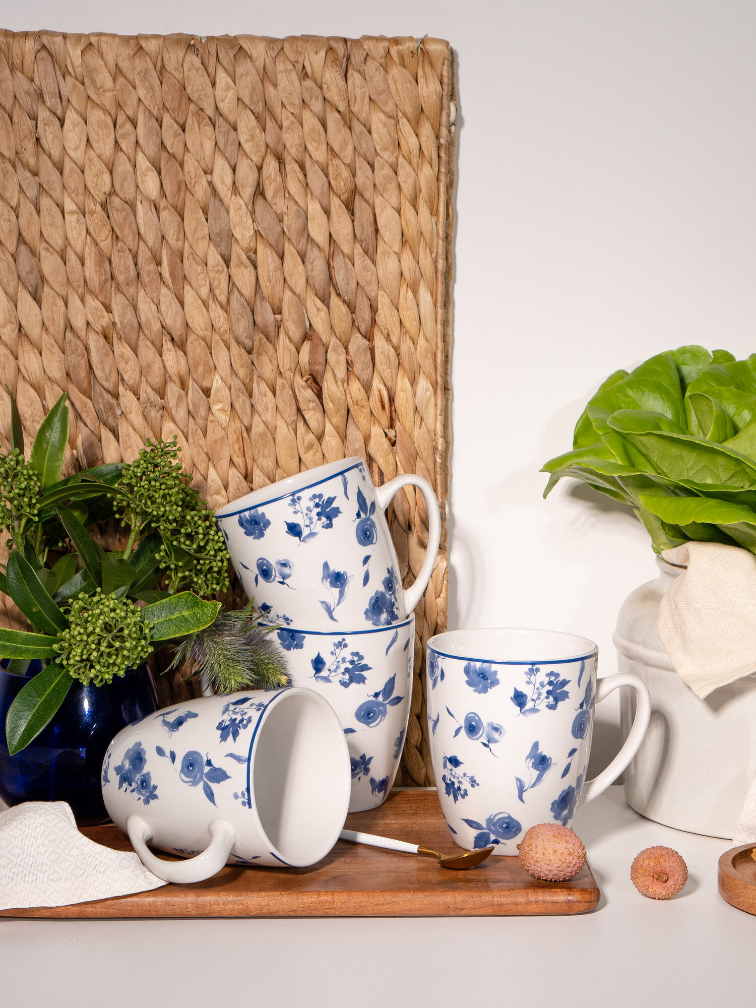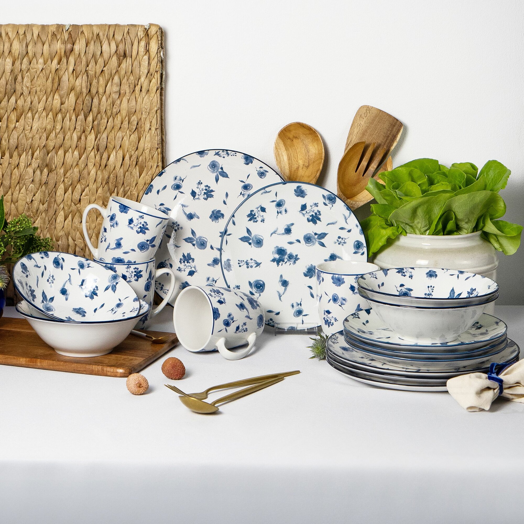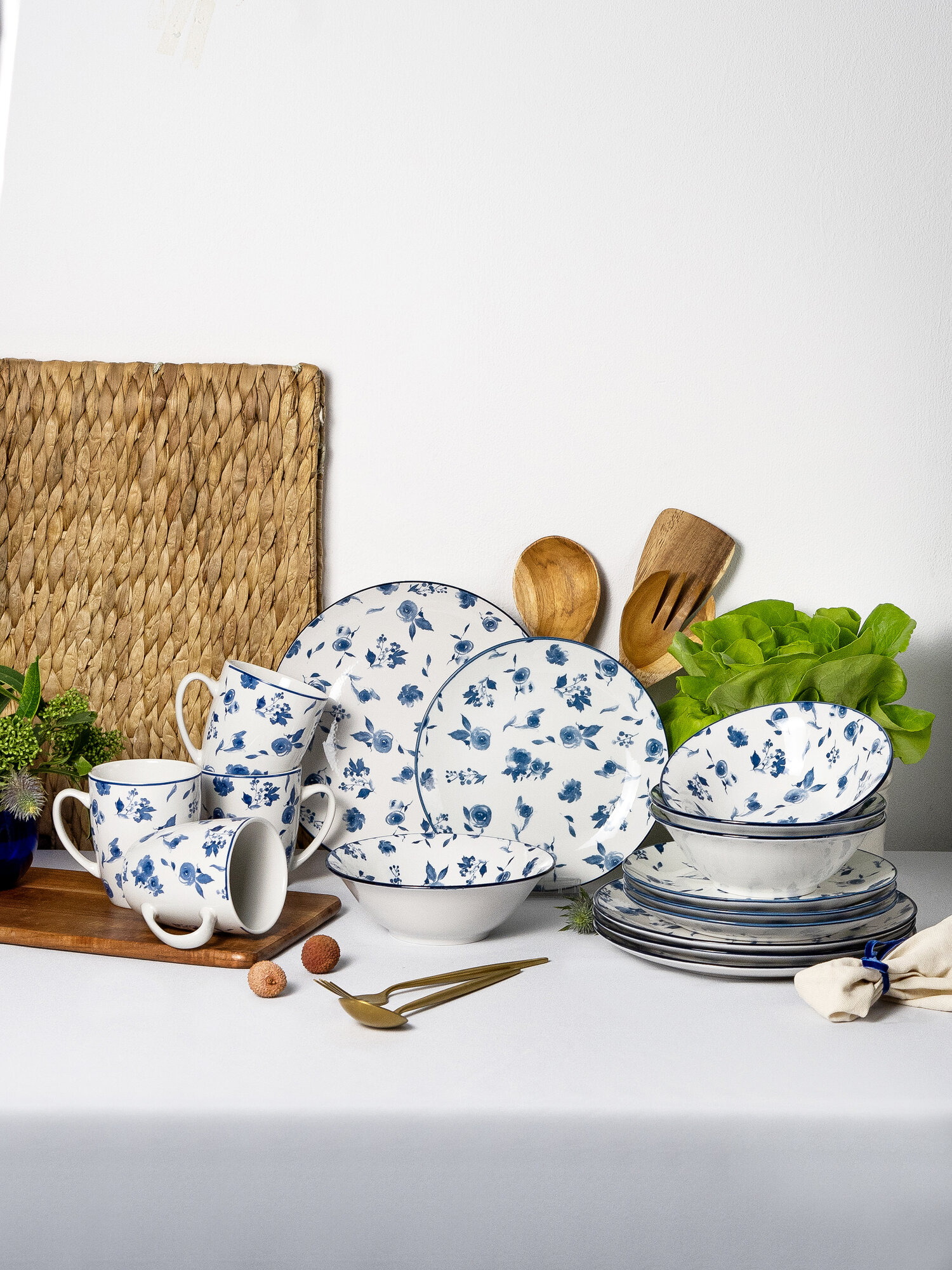 Купить Набор посуды столовой фарфор 4 персоны 16 предметов "Blue calico" с кружками столовый сервиз обеденный Коралл