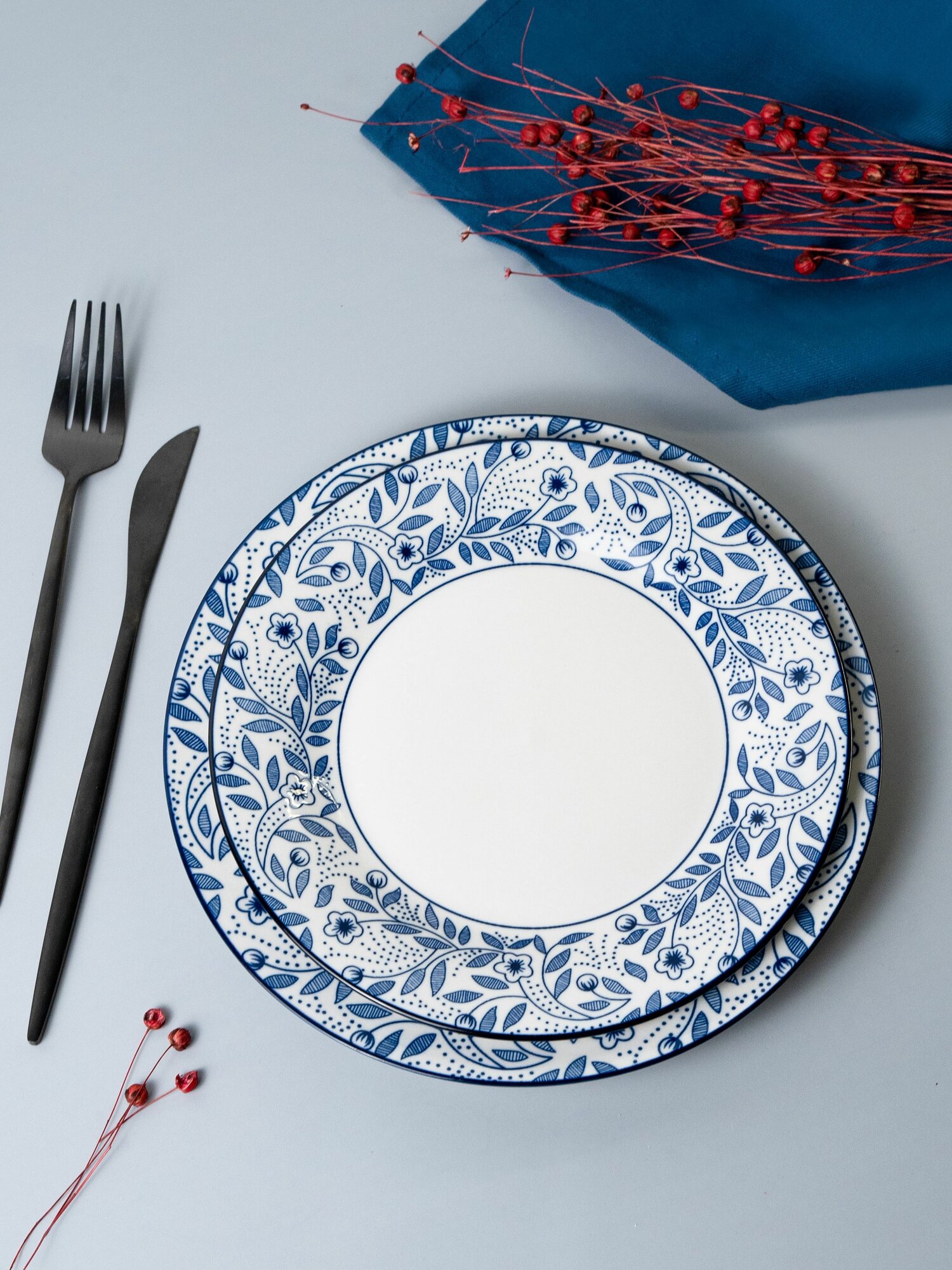 Набор посуды столовой фарфор 2 персоны 10 предметов "Blue calico" столовый сервиз обеденный Коралл