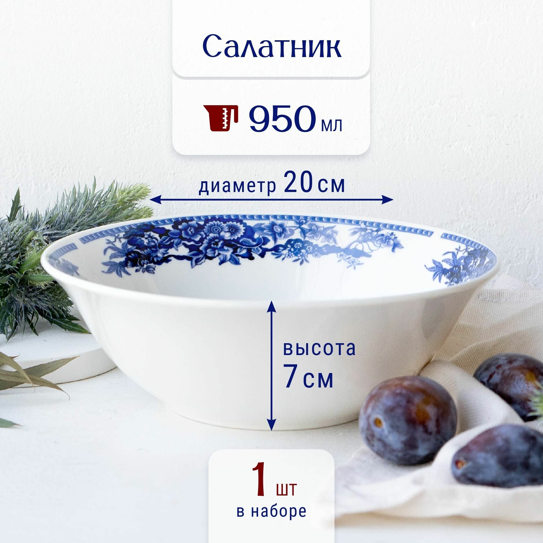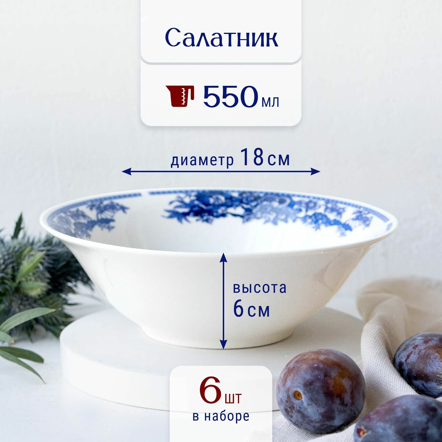 Набор посуды столовой фарфор на 6 персон 18 предметов "Голубой ситец" столовый сервиз обеденный Коралл