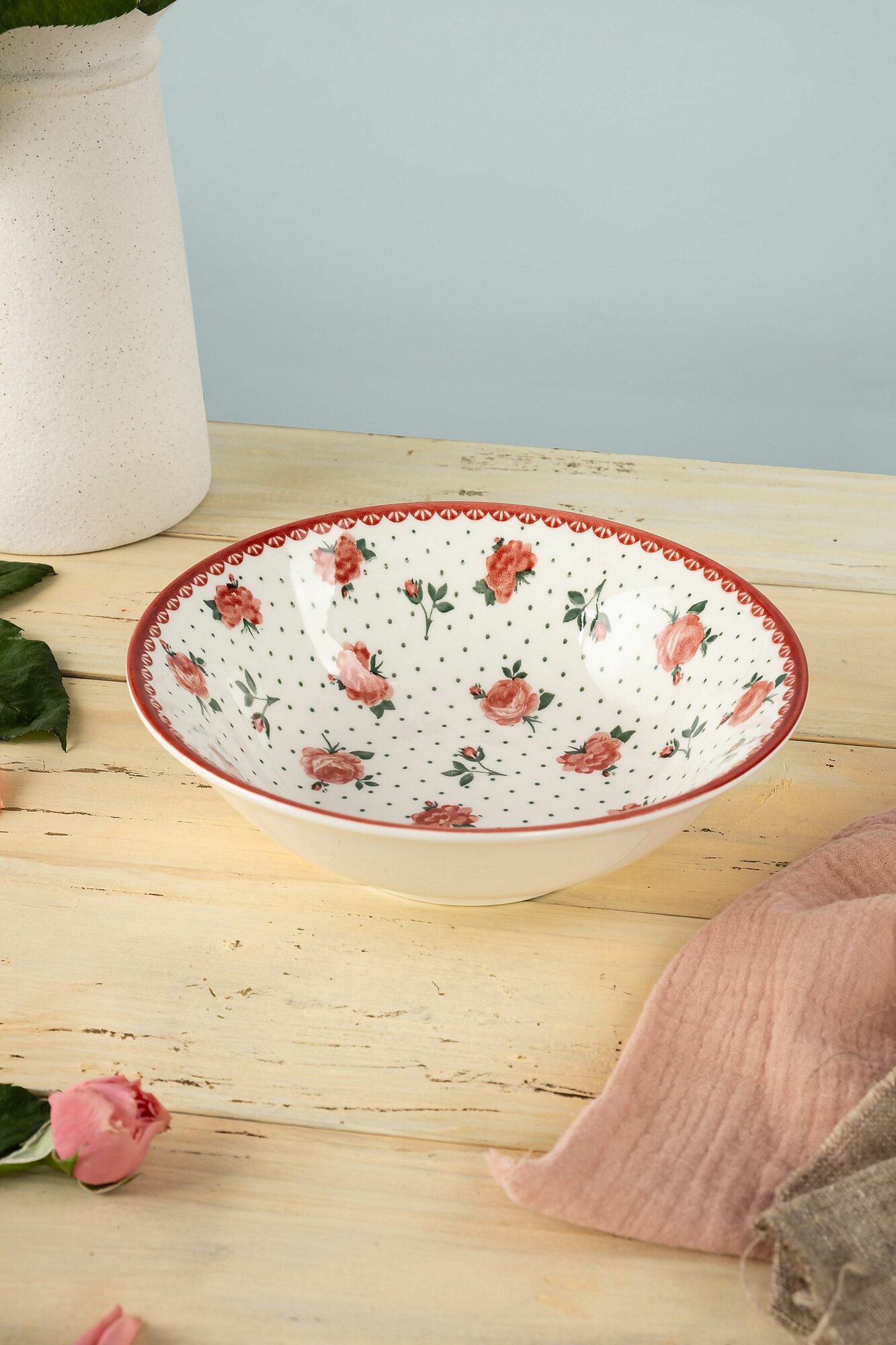 Набор посуды столовой фарфор 4 персоны 13 предметов "У колодца" столовый сервиз обеденный Коралл