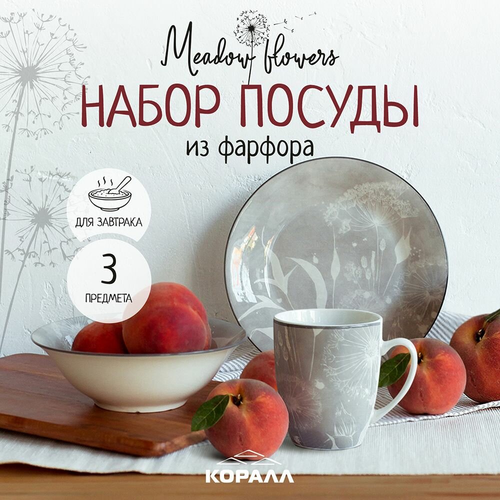 Купить Набор посуды столовой на 1 персону 3 предмета "Meadow flowers". Коралл