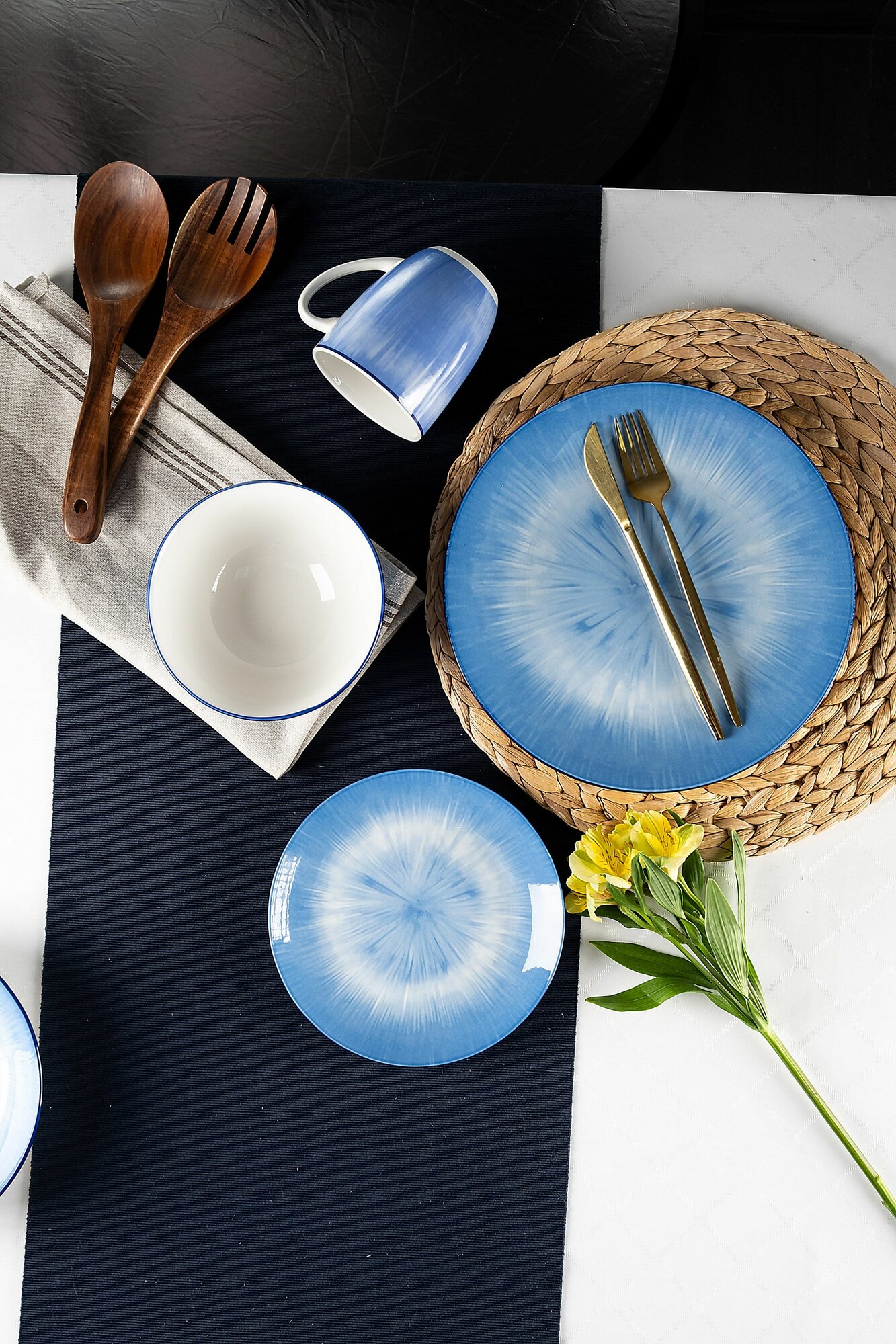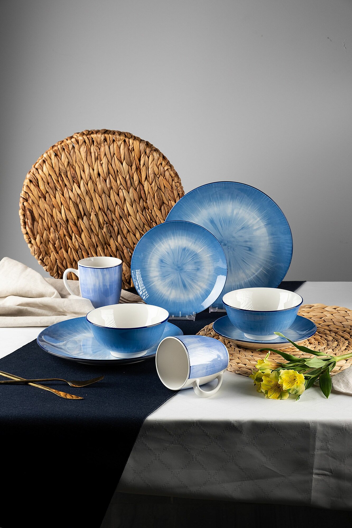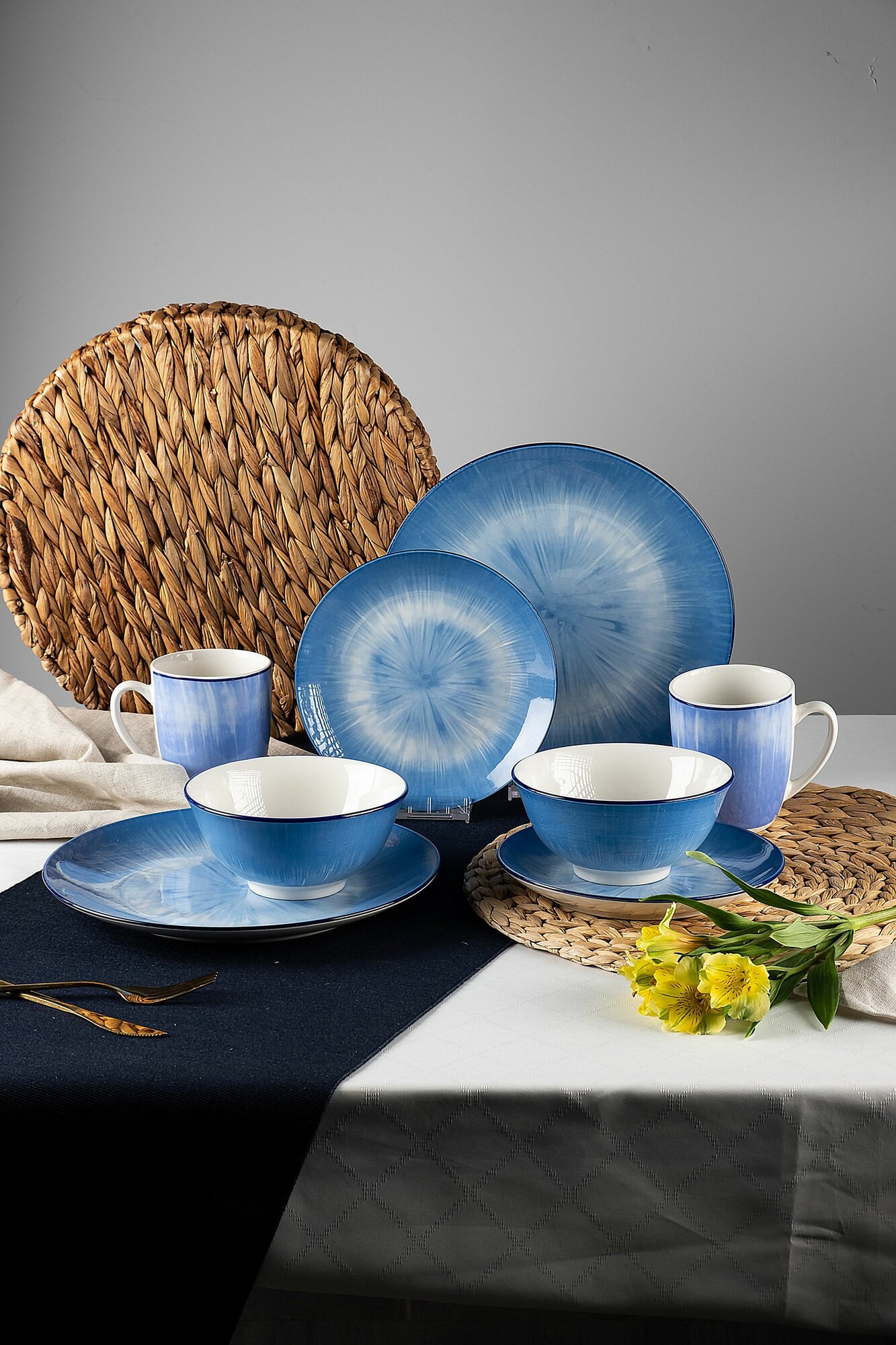 Набор посуды столовой фарфор 4 персоны 16 предметов "Blue calico" с кружками столовый сервиз обеденный Коралл