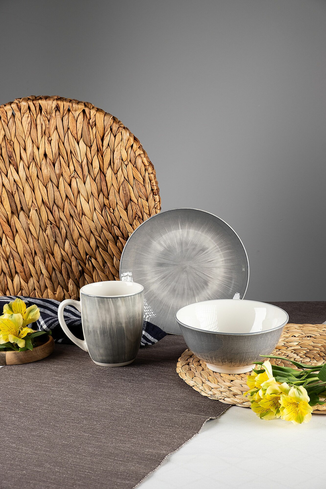 Набор посуды на 4 персоны 16 предметов фарфор "Eden grey", столовый сервиз обеденный
