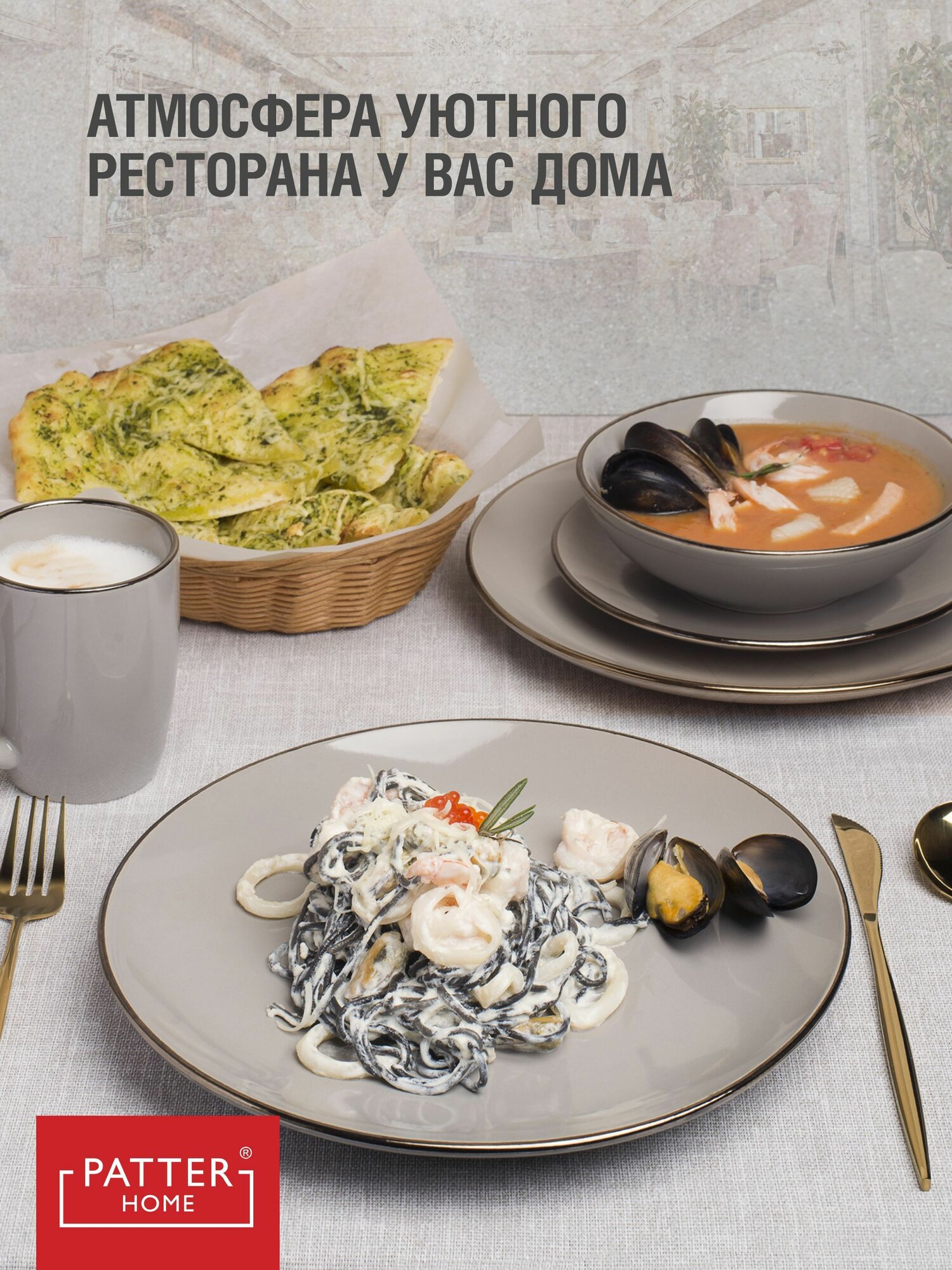 СохранитьСтоловый сервиз для кухни керамический на 6 персон "Ницца", 24 предмета с кружками для напитков, цвет светло-серый интересное: